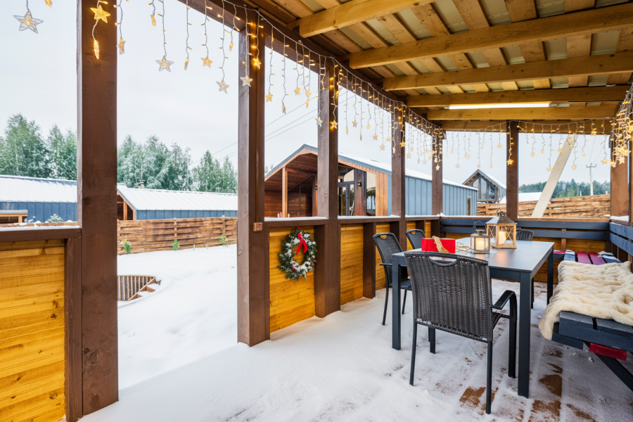 Удобная беседка для вкусных обедов и горячий банный чан на вечер — все это сделает ваш отдых незабываемым, наполненным теплом, смехом и уютом в преддверии Нового Года. Пусть каждый момент здесь будет пропитан праздничным лёгким вайбом и атмосферой волшебства!