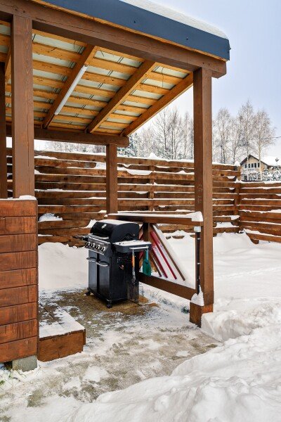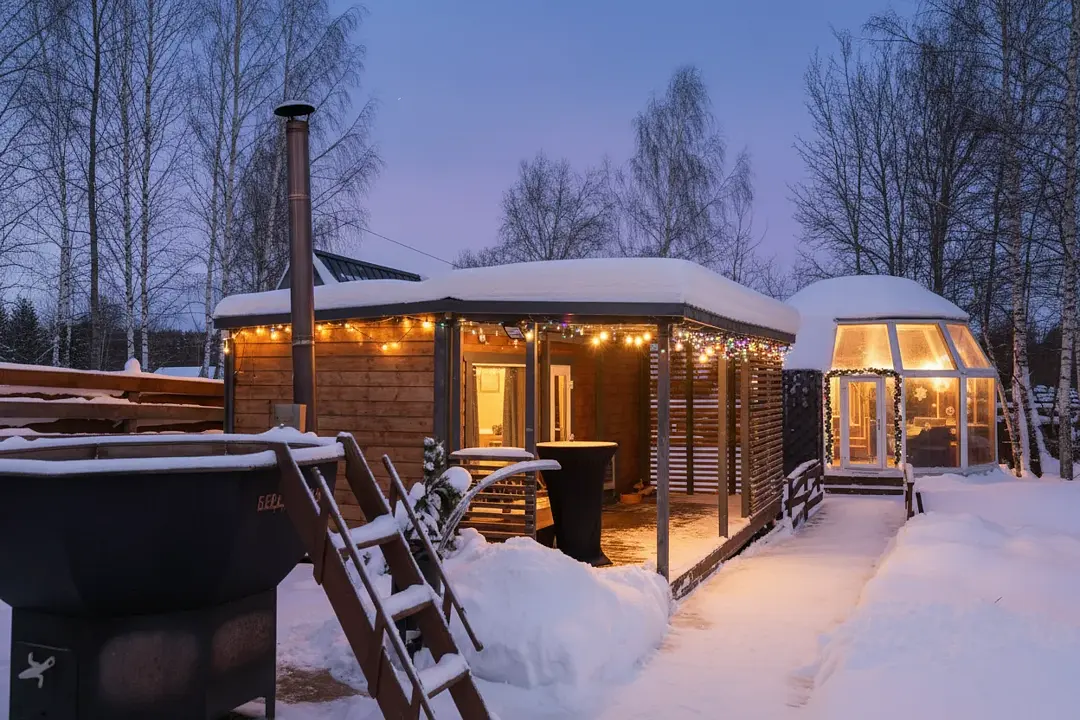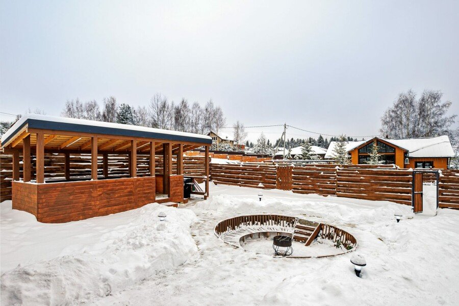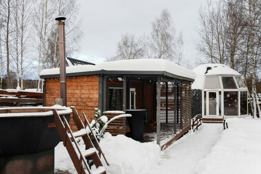 Банный чан поможет вам окунуться в тепло и уют, а вокруг раскинется красивый зимний пейзаж — идеальный фон для ярких новогодних фотографий для ваших соцсетей. Пусть этот дом станет частью ваших волшебных праздников!