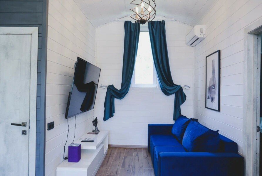 В большинстве домиков имеются проекторы с большими экранами, обеспечивающие атмосферу настоящего кинотеатра. Вечером здесь можно с комфортом смотреть фильмы.