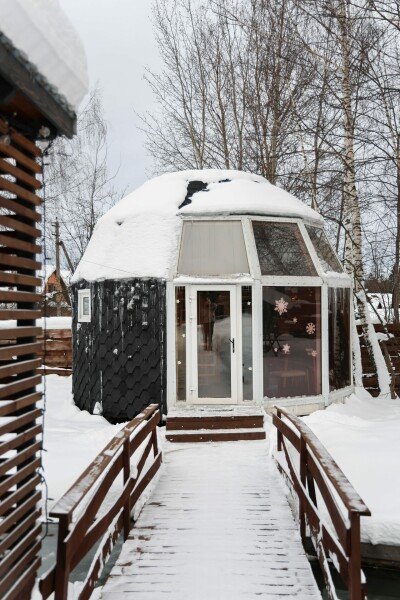 Дом «СФЕРА» — самый необычный и волшебный домик на нашей базе, словно сошедший со страниц снежной сказки. Его уникальная форма создает уютную и загадочную атмосферу, превращая ваш отдых в настоящую зимнюю сказку.