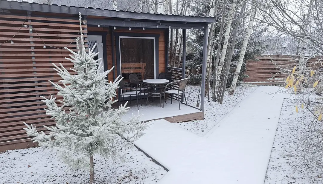 «Березовая роща» представляет вашему вниманию дом «House-1» — уютное праздничное место, где можно насладиться тёплыми минутами в кругу семьи и друзей. В окружении волшебного зимнего пейзажа и мерцающих огоньков вы можете провести время у костровой зоны, готовить на открытом воздухе, создавая вкусные зимние блюда, и делать яркие фотосессии в стильном доме.