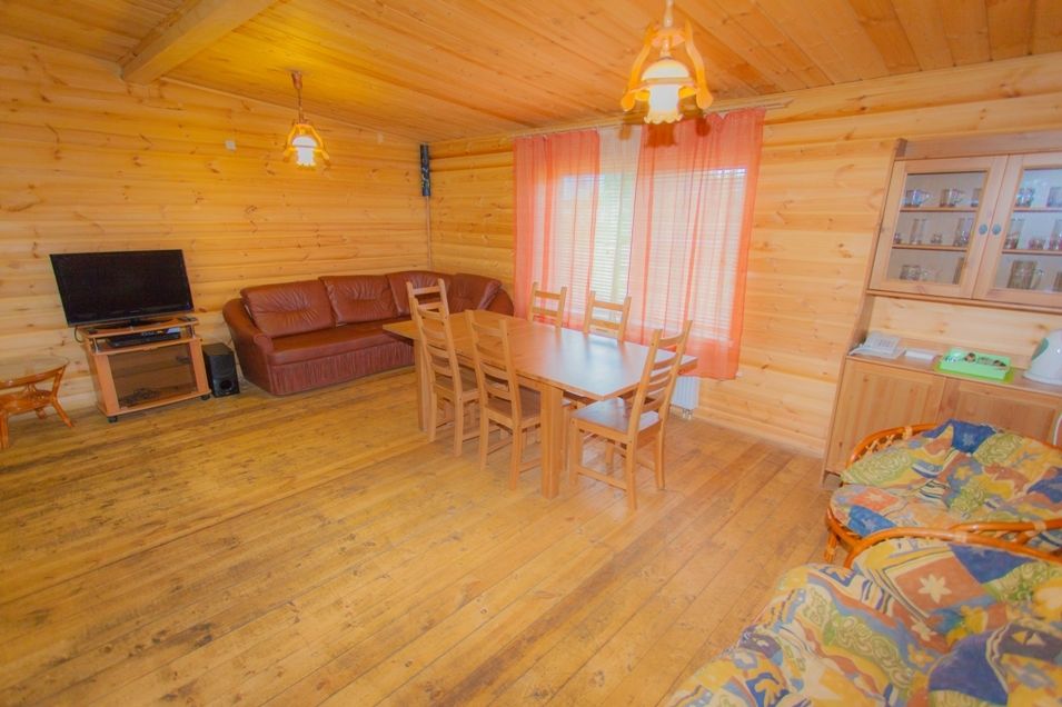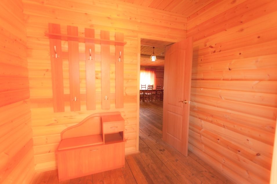 В доме есть обеденная зона, санузел и прихожая.