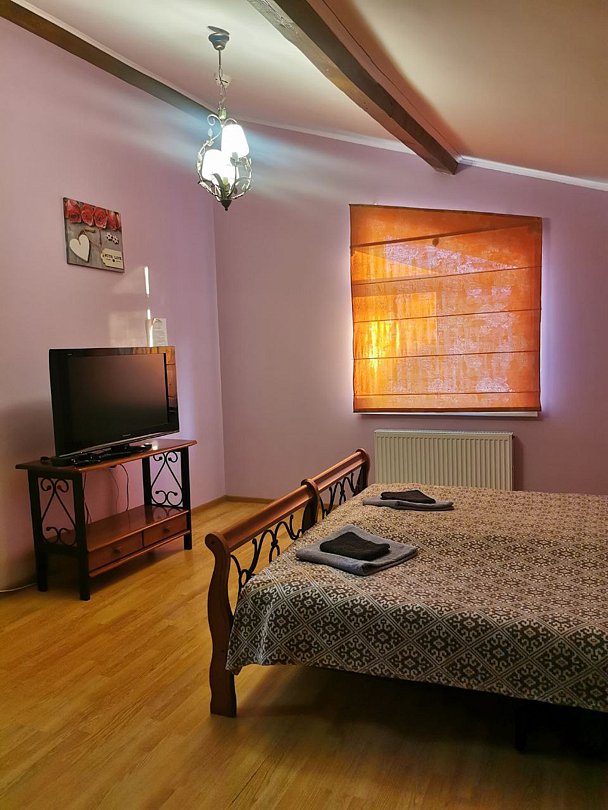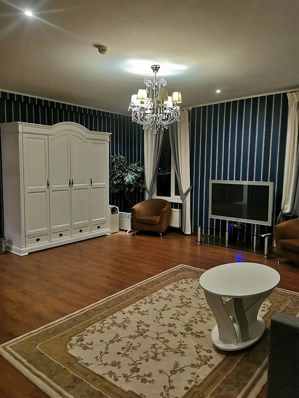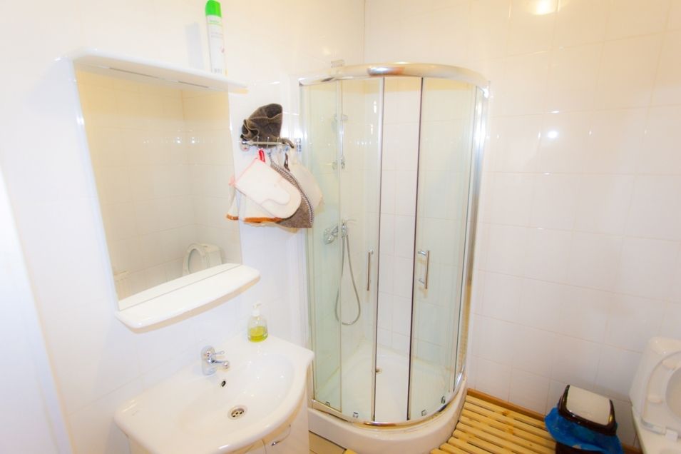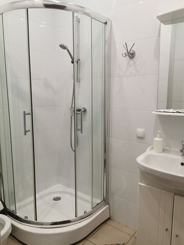 Мебель: диван, сервант, обеденный стол, мягкая мебель. Приборы: посуда стеклянная, столовые приборы. Техника: телевизор, спутниковое ТВ. Ванная комната: душевая кабина, туалет. Вай-фай отсутствует.