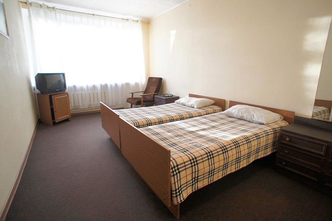 НедостаткиНомер люкс заявленный совсем не соответствует. Что уж говорить про другие. Мебель старая, телевизор половина каналов не работает, воды горячей нет еле тёплая бежит, сантехника старая, после дождя капает с потолка. Развлечений нет никаких, можно хотя-бы по вечерам фильмы организовать, по утрам зарядку. Кулеров нет,воду обычную из столовой брать нельзя, только покупать в баре 50 р за 250 мл.