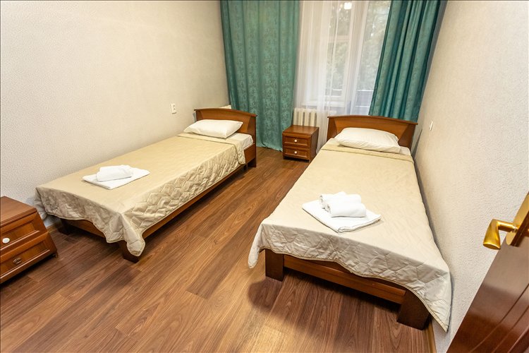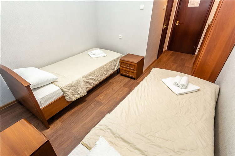 Номер двухкомнатный блочного типа, в каждой комнате по 2 односпальные кровати.