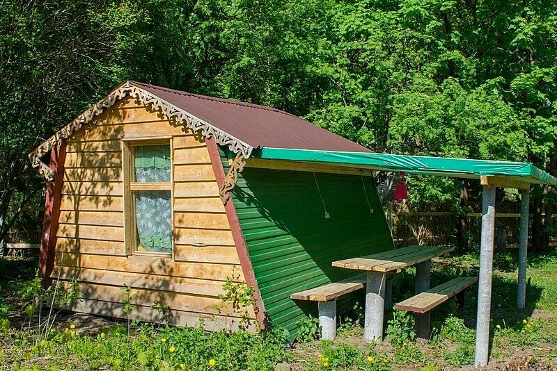 Туристические домики оборудованы кроватями, столом, стульями. Кровати двуспальные, или раздельные. Все домики электрифицированны и оборудованы навесами с мангалом и газовой плитой. Кастрюли, чайники, сковородки выдаются при заселении. Посуду требуется привезти свою.