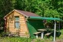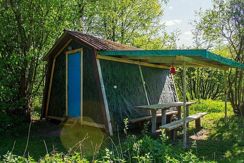 Территория оборудована душевыми и туалетными кабинами. Летом работает летний душ, в остальное время душевые в бане.