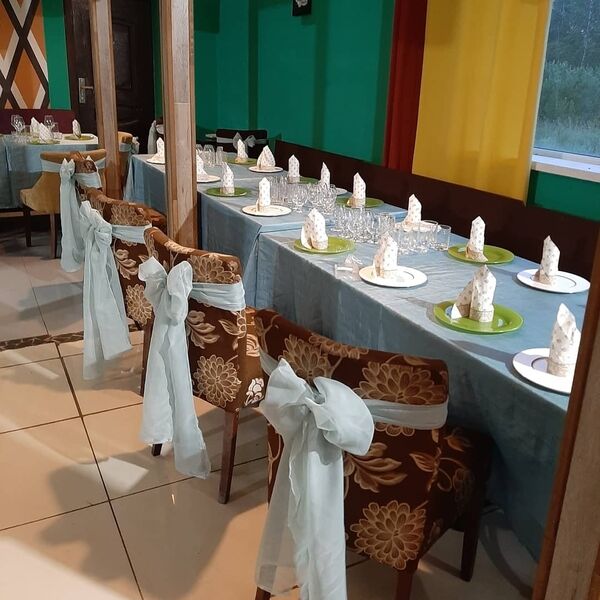 Для обслуживания гостей вне кафе работает платная служба доставки блюд и сервировки столов.