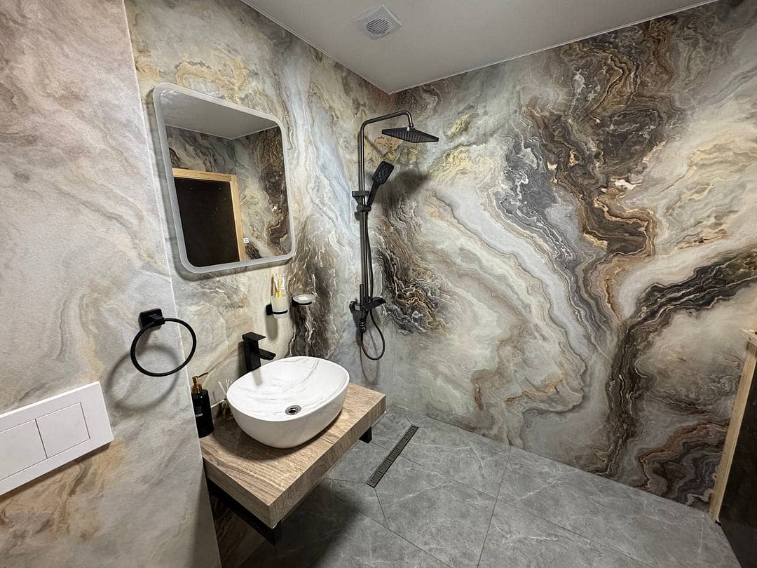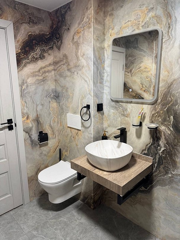 - тёплые полы, кондиционеры, гибкий мрамор.