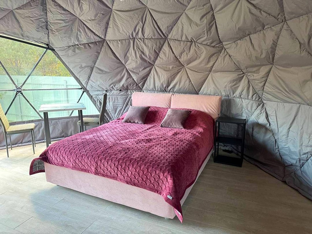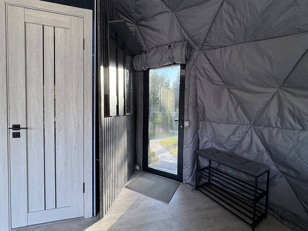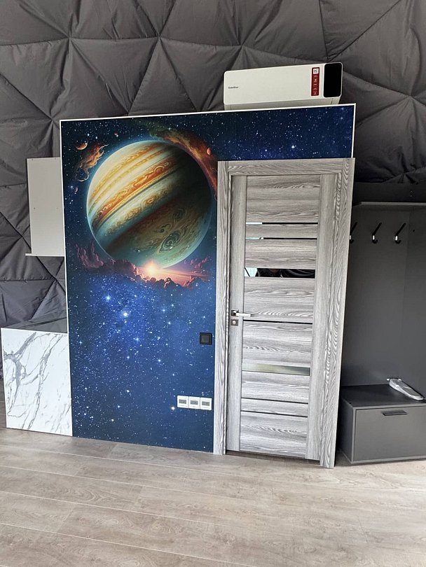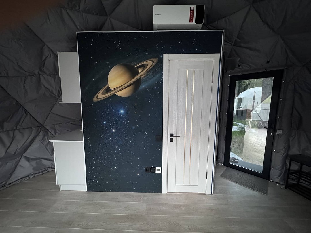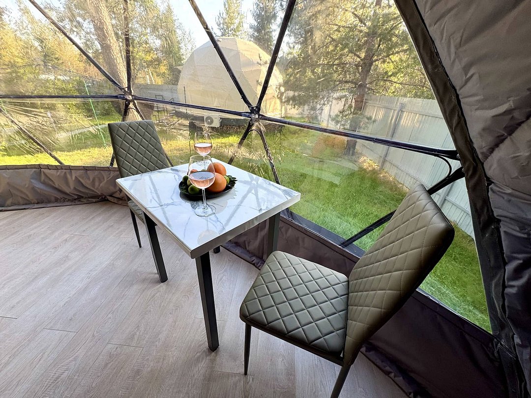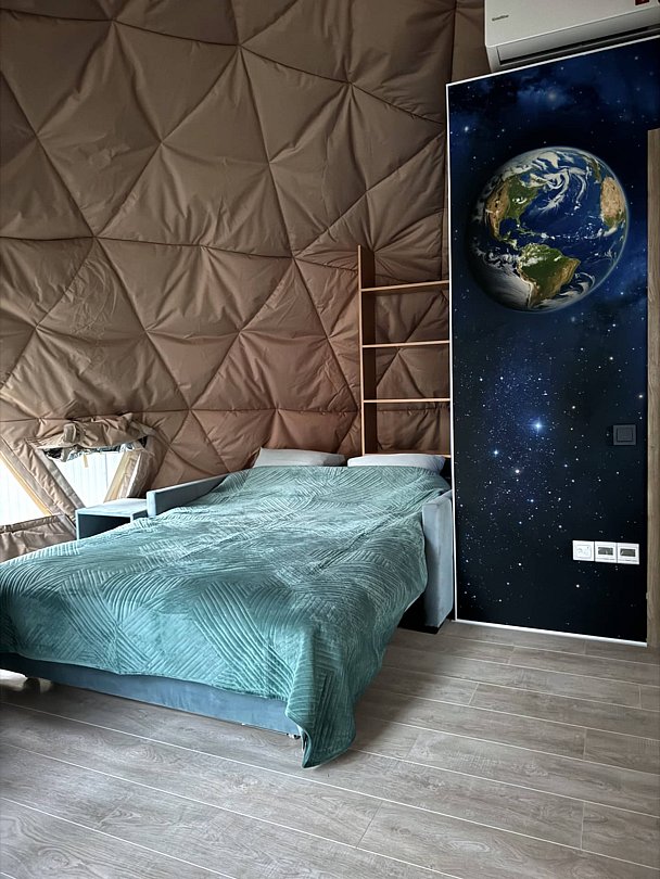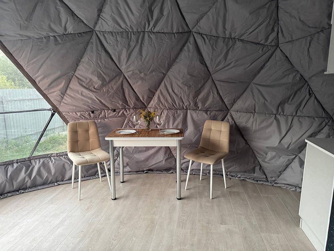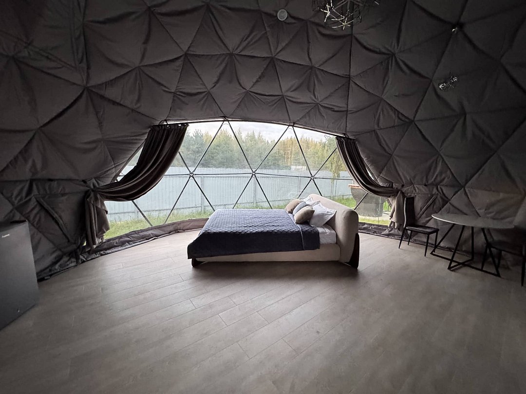 Стильный купольный домик с панорамным видом на звёздное небо. Идеален для романтического отдыха и созерцания природы в уединении.