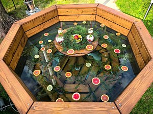 Удобная беседка для вкусных обедов и горячий банный чан на вечер, подарит вашему отдыху незабываемые эмоции.