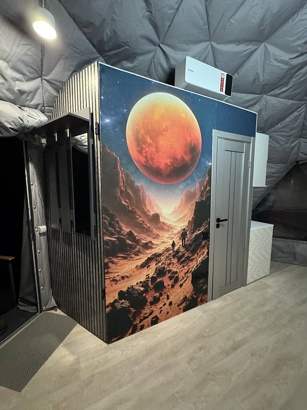 Представляем вашему вниманию Дом-сфера Марс. Этот домик с уникальным дизайном и неповторимой атмосферой подойдет как для душевного и романтического вечера, так и для отдыха с детьми.
