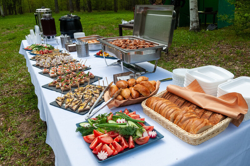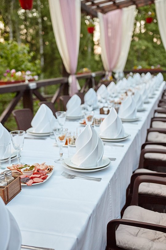 Кафе под открытым небом предлагает изысканное меню с обслуживанием по меню, где свежий воздух и красота природы станут прекрасным дополнением к вашему празднику — будь то свадьба, день рождения или другое важное событие.