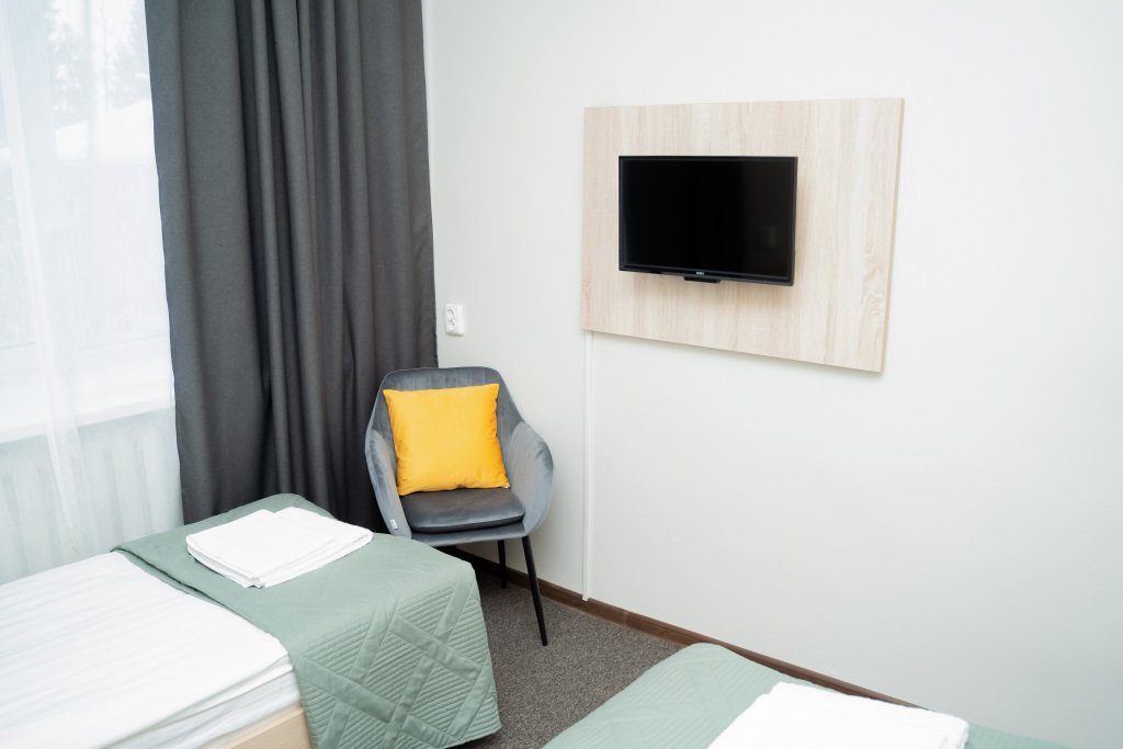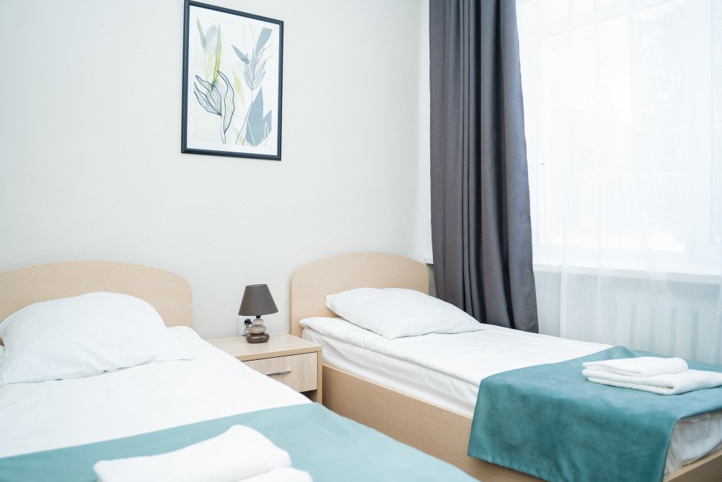 Удобная планировка номера пансионата позволяет использовать его как для семейного отдыха, так и для командировок. Номер оборудован двумя односпальными кроватями, телевизором с плоским экраном, холодильником и прикроватной тумбочкой, санузлом с ванной/душевой кабиной. Преимуществом номера "Стандарт" является идеальное соотношение цены и качества.