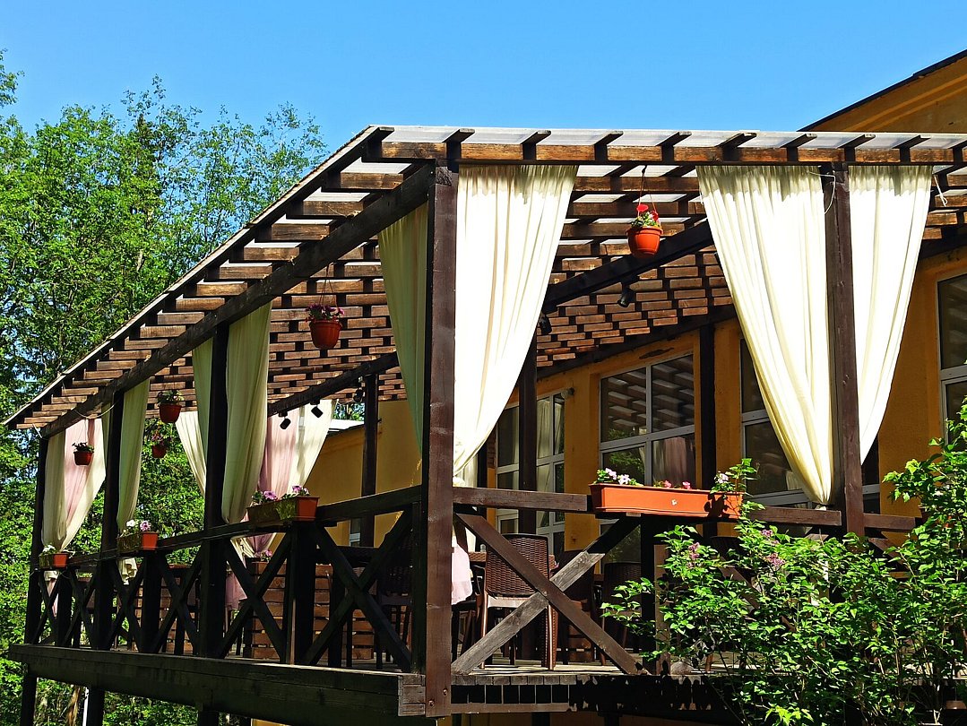 Летняя веранда «Золотая рыбка» — место для незабываемых торжеств и романтических свиданий. Уютная атмосфера, отдельный вход и живописный лесной пейзаж создают ощущение полной приватности.