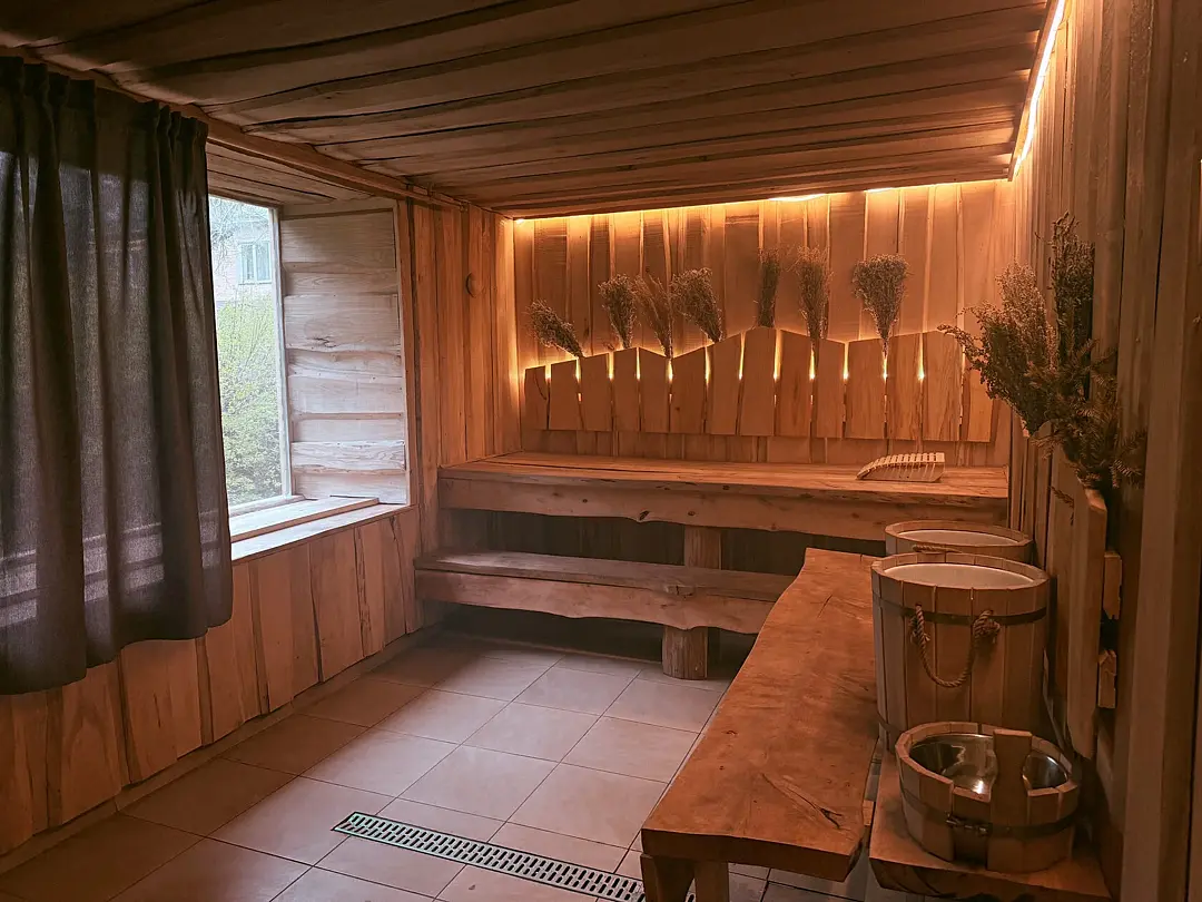 Территория пансионата хорошо содержится в чистоте, мусора нет, снег убирают независимо от количества. Так же на территории есть бани (хамам, сауна, русская) и бильярд, работает прокат спорт инвентаря.