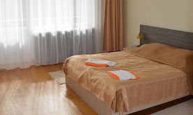 3-местный двухкомнатный номер. В одной комнате располагается 1,5-спальная кровать и диван, во второй комнате - двуспальная кровать.