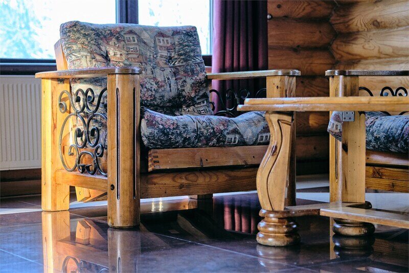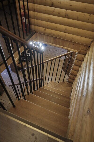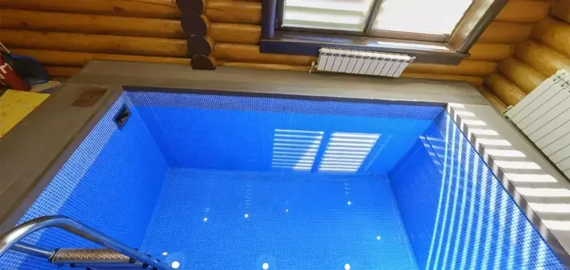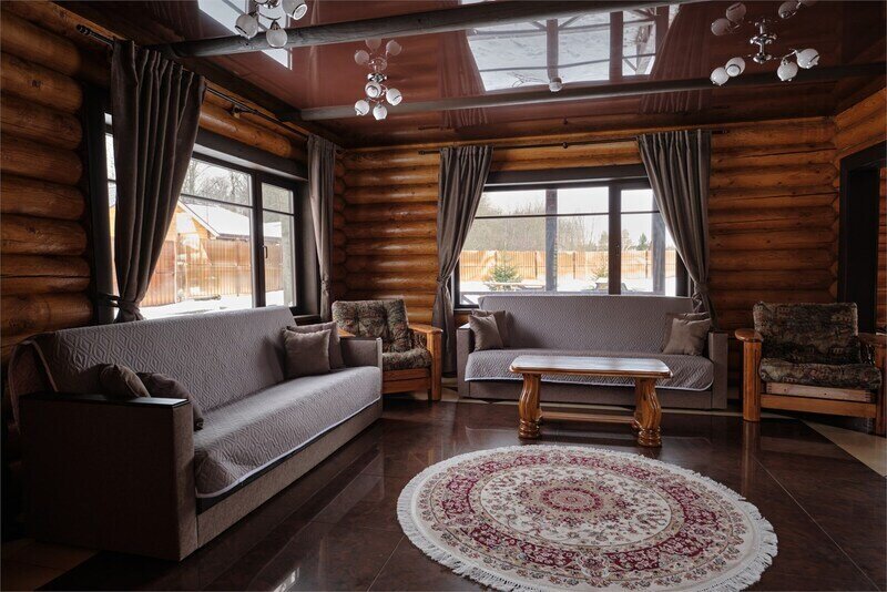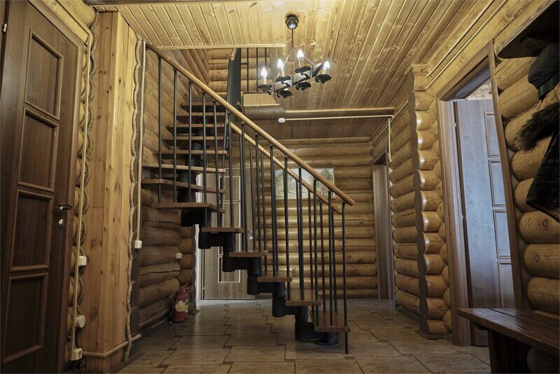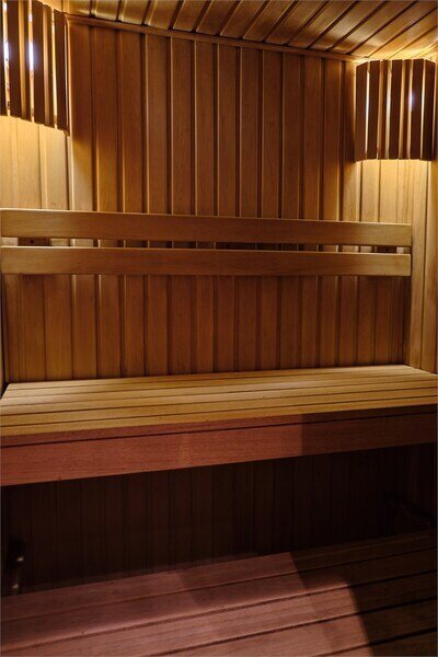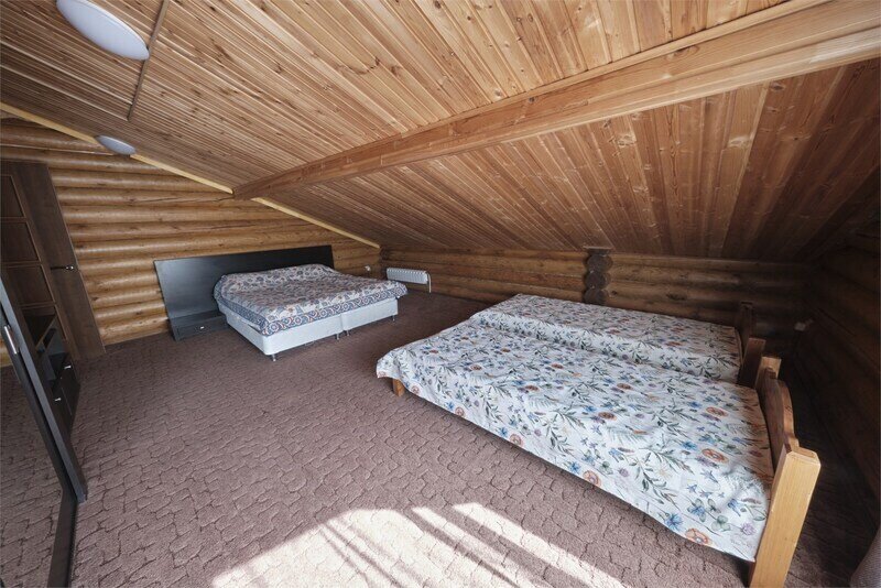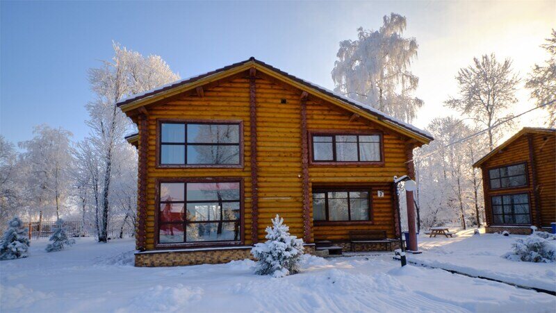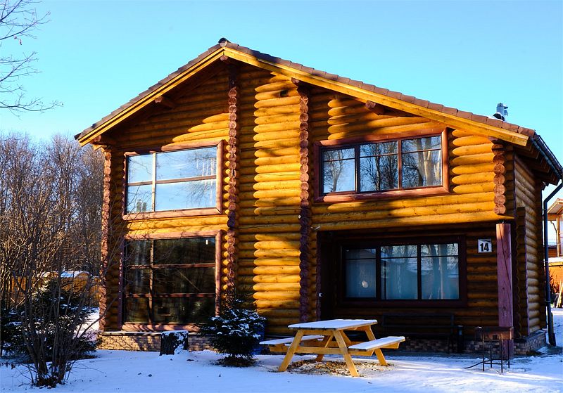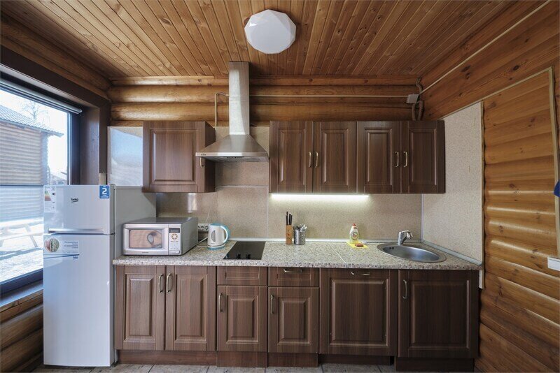 Баня на дровах расположена в шале. Помимо русской бани шале оборудован небольшим бассейном. Русская парная рассчитана на 8 человек.