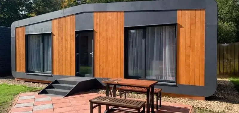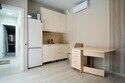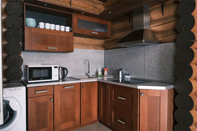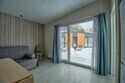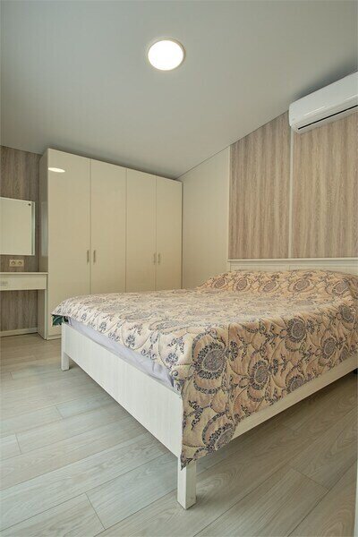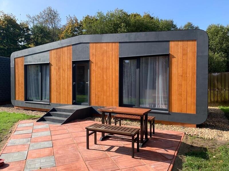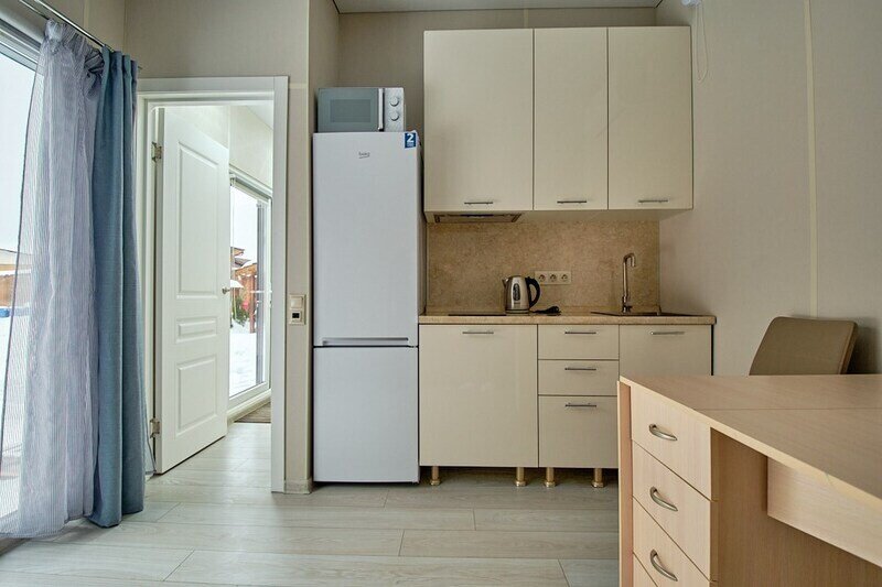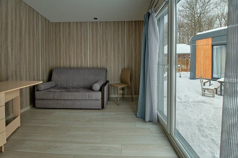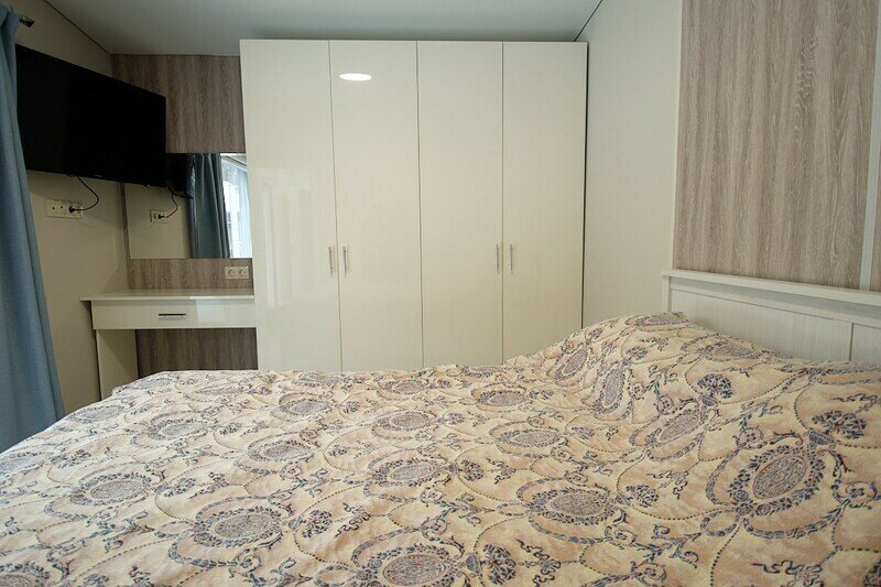 Компактный коттедж для 2 человек в современном европейском стиле. В спальне расположена комфортная двуспальная кровать с прикроватными тумбочками, комодом и большим ЖК-телевизором. Кухня оборудована электрической плитой, холодильником, чайником, микроволновой печью и краном для питьевой воды. Ванная комната с душевой кабинкой и стиральной машиной. (Возможно размещение двух дополнительных гостей на диван-кровати).
