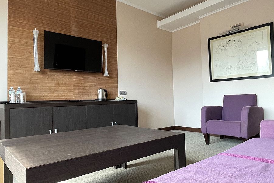 Оформлен в классическом стиле. В номере есть все необходимое для комфортного проживания.