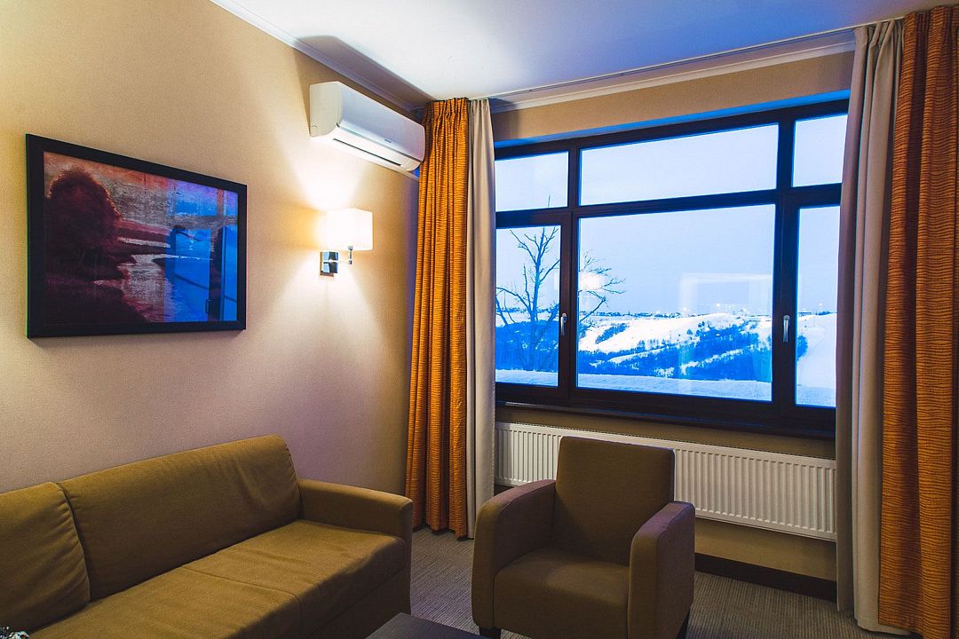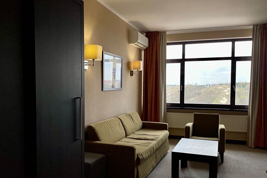 ДостоинстваПриехали с подругами, желая научиться кататься на лыжах. В номере есть все необходимое, гигиенические принадлежности и так далее. Завтрак отличный, все блюда вкусные. Есть прокат оборудования. В спа отлично можно отдохнуть. На территории есть каток и танкодром. Уже планируем вернуться сюда снова.