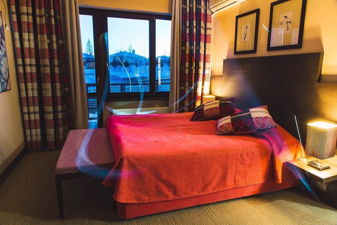 Постояльцы могут поселиться в уютных гостиничных номерах отеля либо найти для себя подходящее жилье в коттеджном поселке.