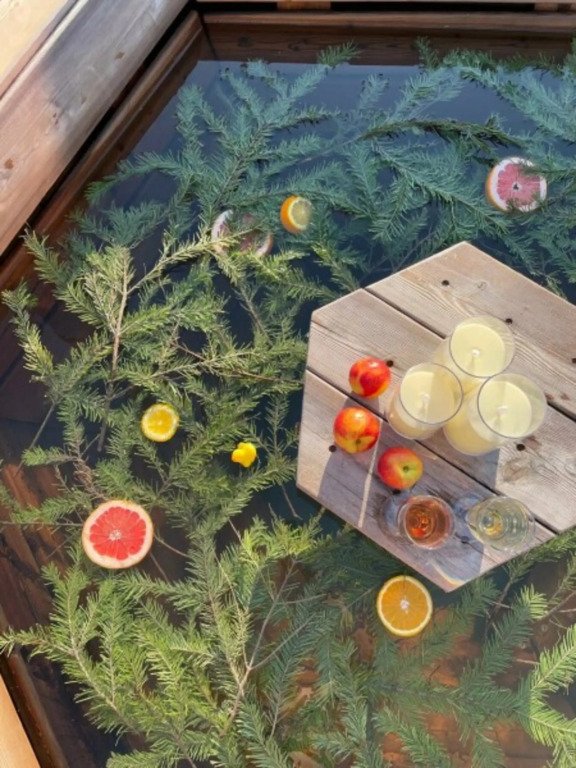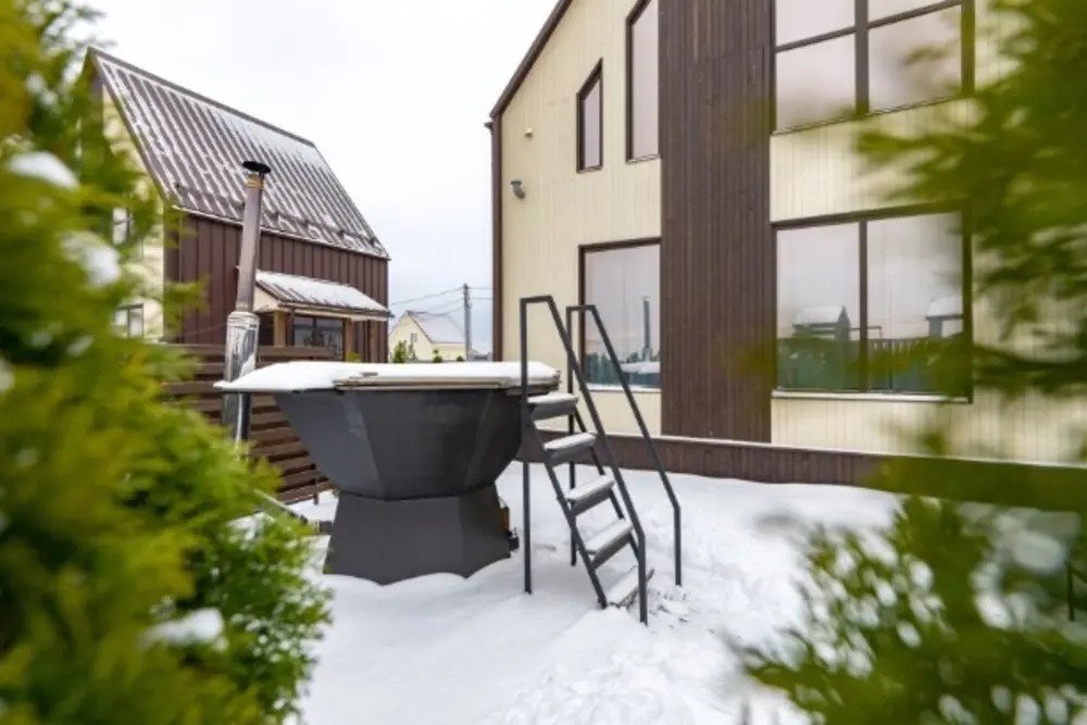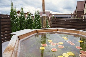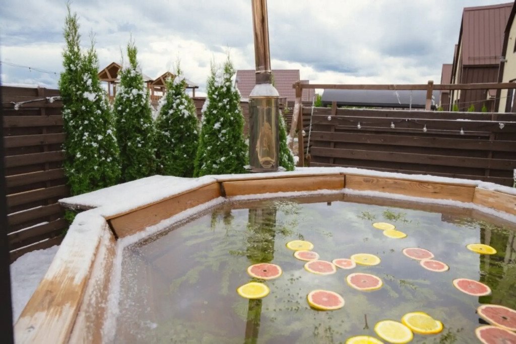 После парной вас ждет особенное удовольствие — подогреваемый чан под открытым небом.