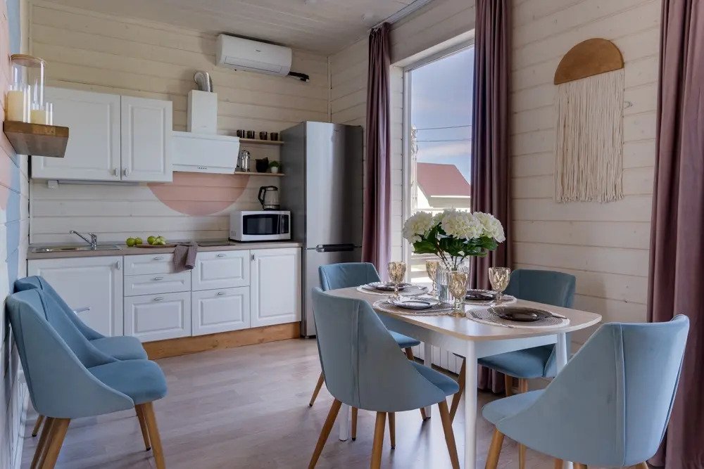 Вам будут предложены уютные, полностью оборудованные домики, где продумана каждая деталь для вашего комфорта: чистота, тепло и особая атмосфера. Отдых «под ключ» включает в себя всё необходимое для незабываемых впечатлений — от чана и бани на дровах до закрытой территории, комплектации (пледы, посуда, мангал, дрова), живописных видов и удобной парковки.