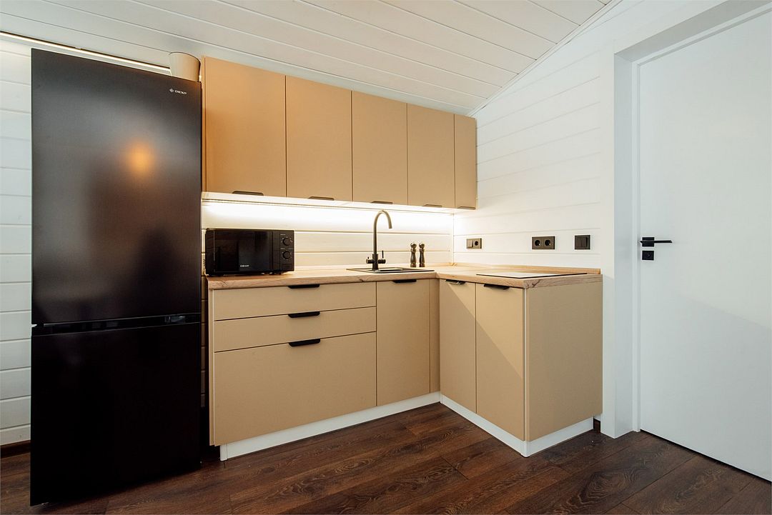 Для максимального комфорта на кухне есть вкусный ароматный чай, кофе, мед и сахар, также в домике доступны настольные игры, система караоке, а телевизор предлагает все сериалы и новинки в открытом доступе.
