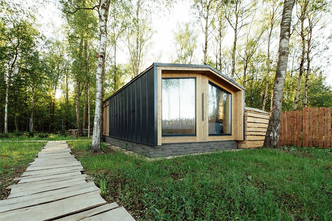Вместимость — один–два человека. Размер дома — пятнадцать квадратных метров. Открытая терраса с видом на лес — пятнадцать квадратных метров.
