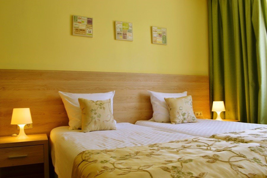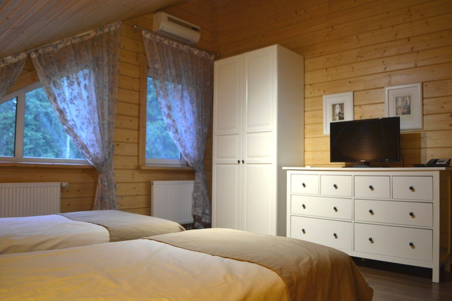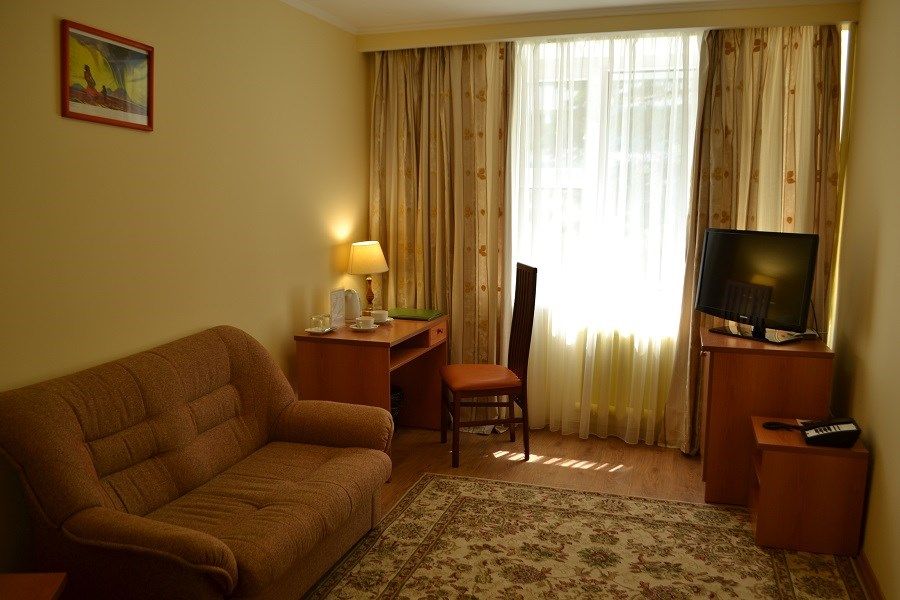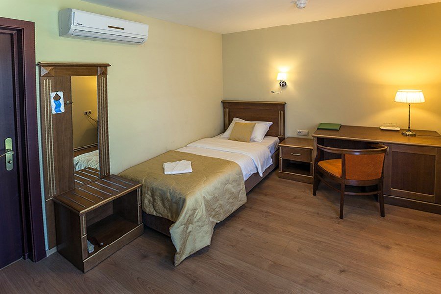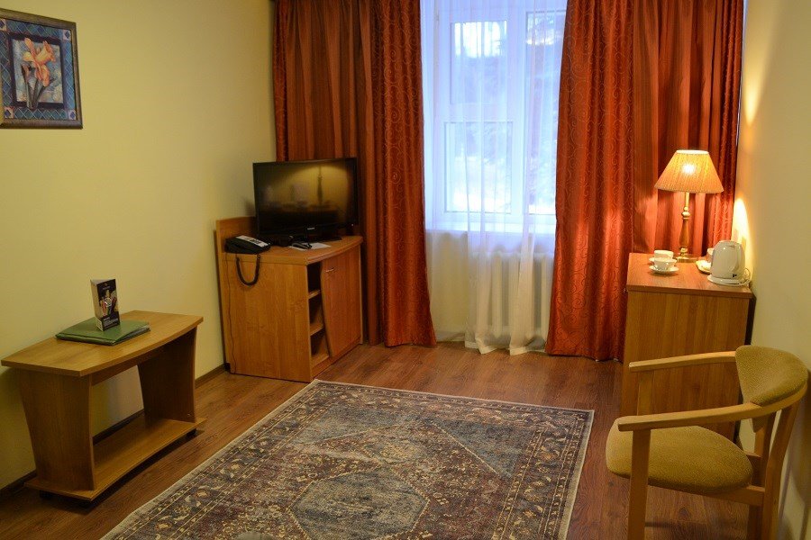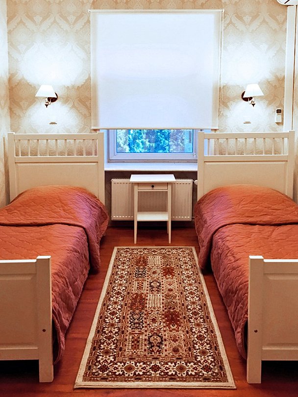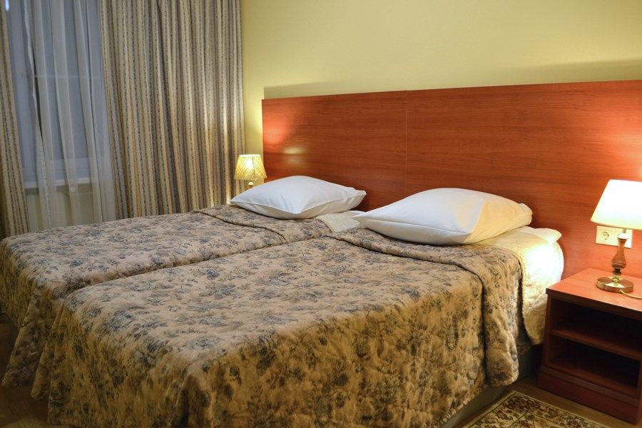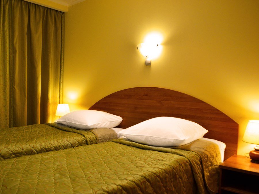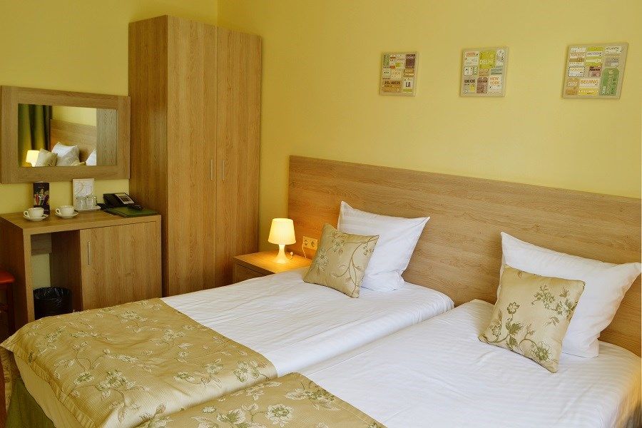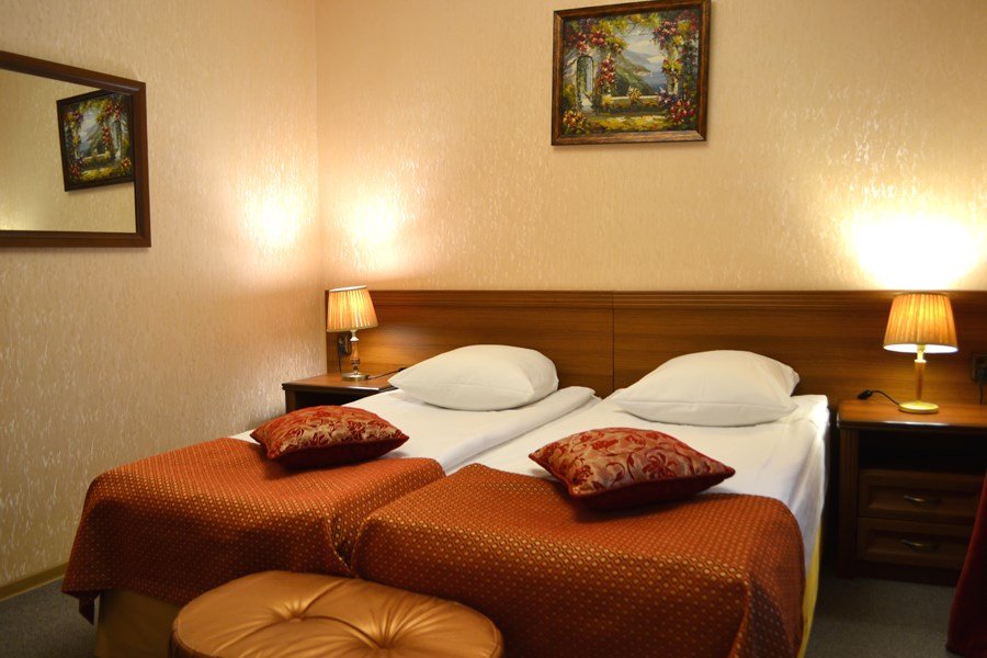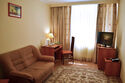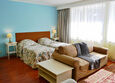 В номере: 2 односпальные кровати с возможностью трансформации в одну двуспальную кровать, шкаф, тумбы, мини-бар, телевизор, IP-TV, wi-fi.