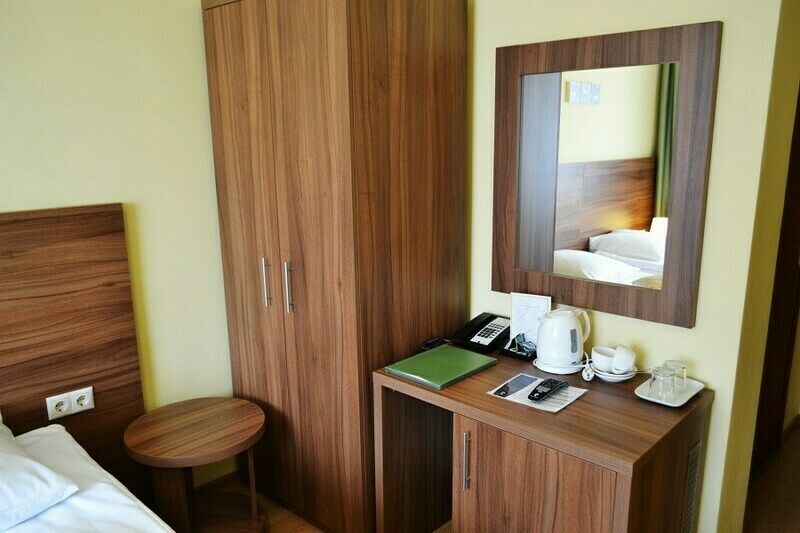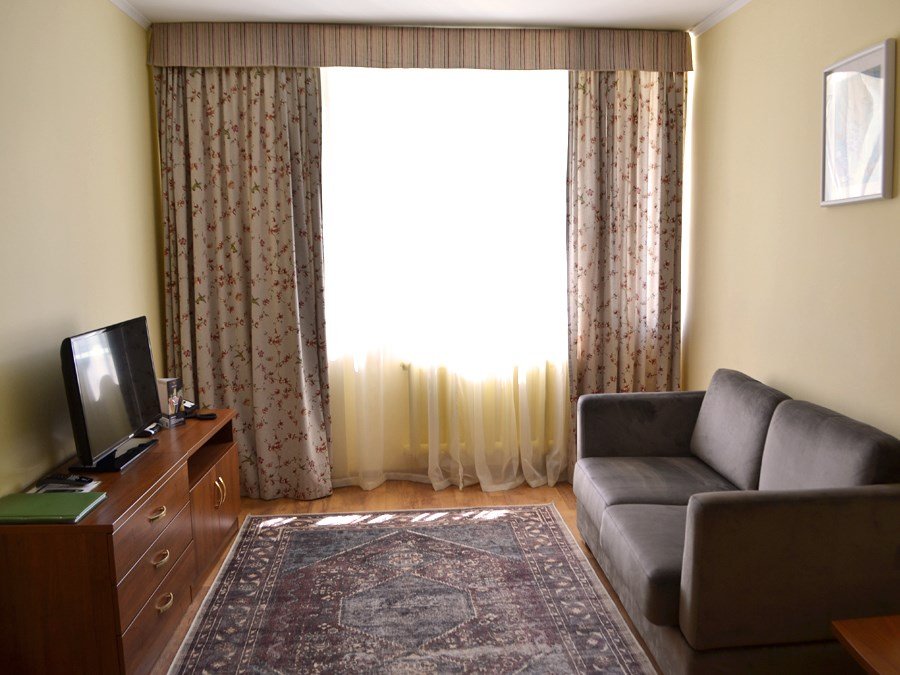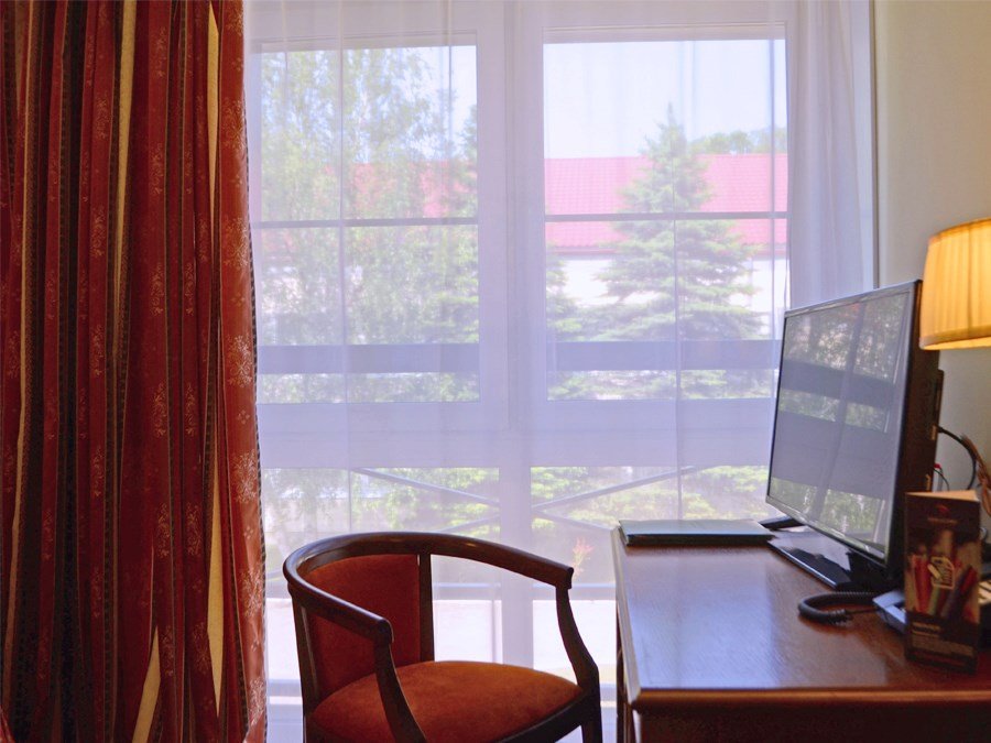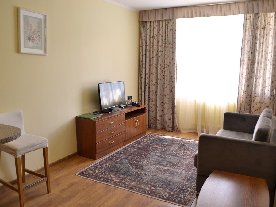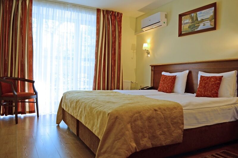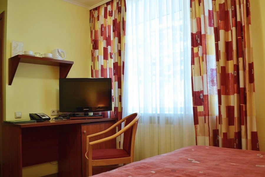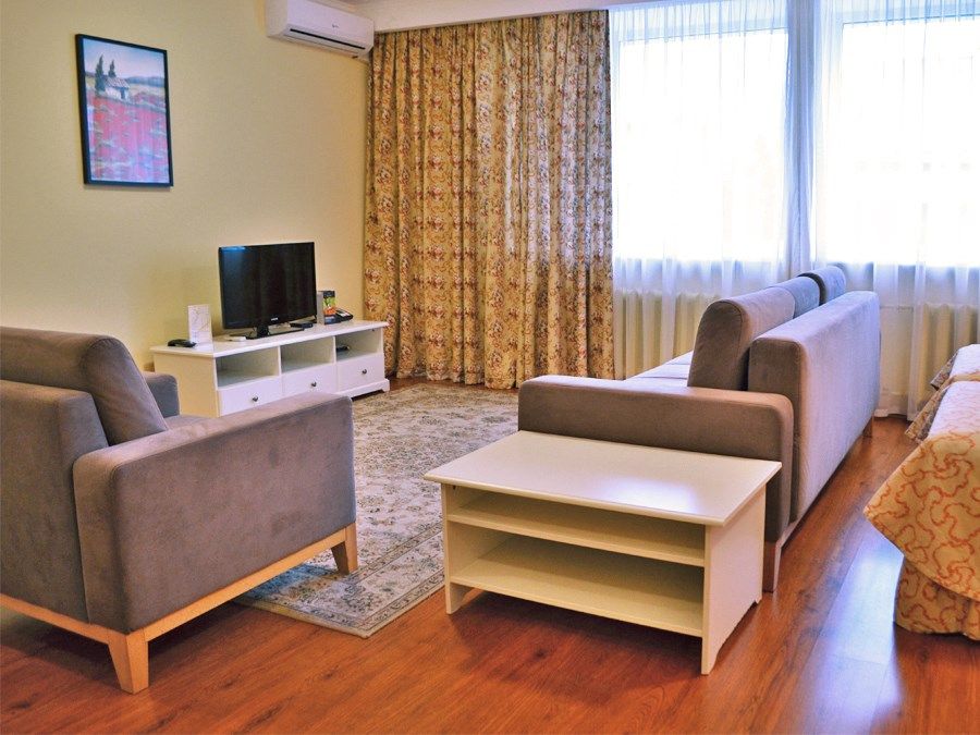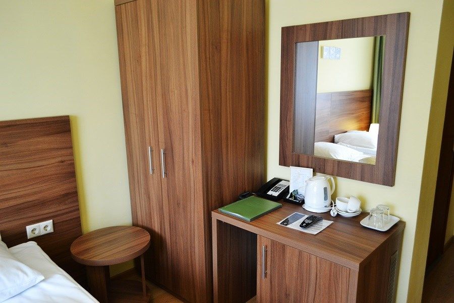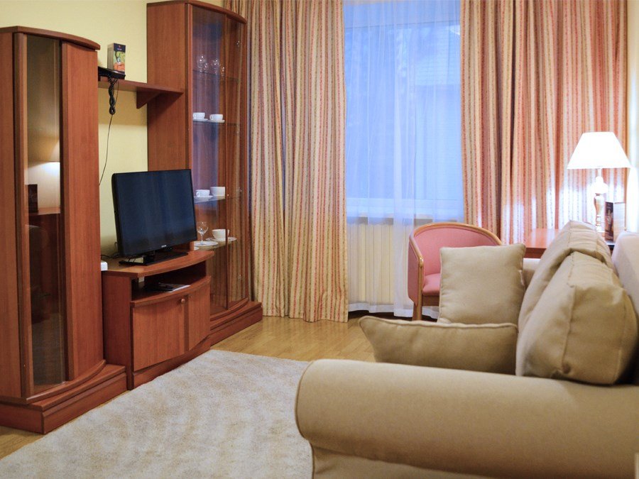 В номере: 2 односпальные кровати с возможностью трансформации в одну двуспальную кровать, шкаф, тумбы, мини-бар, телевизор, IP-TV, wi-fi.