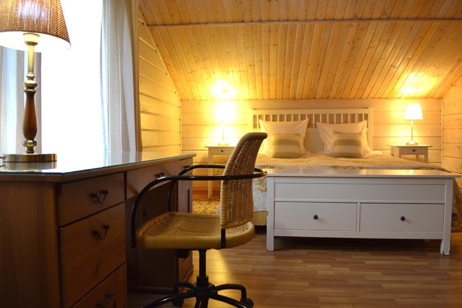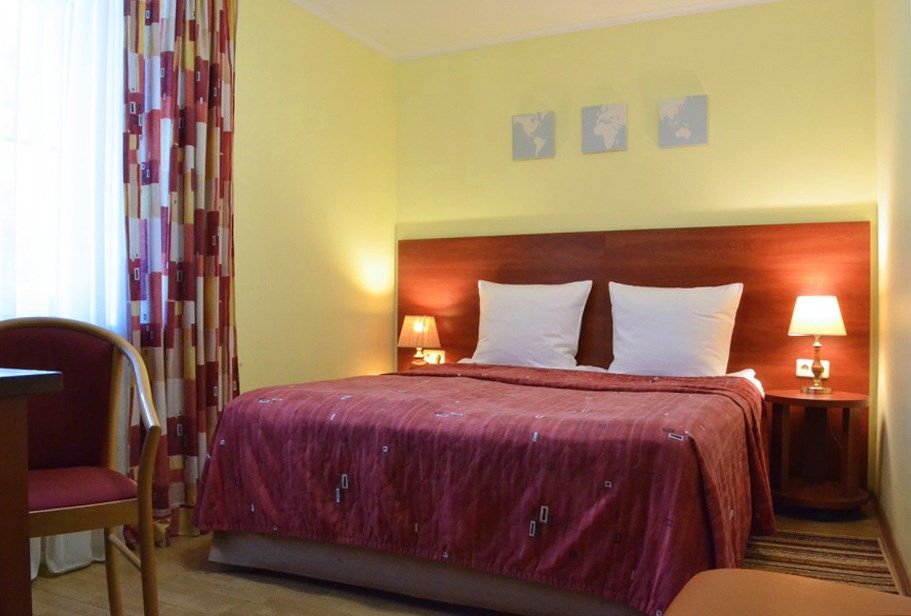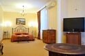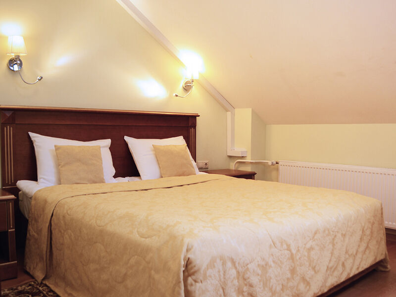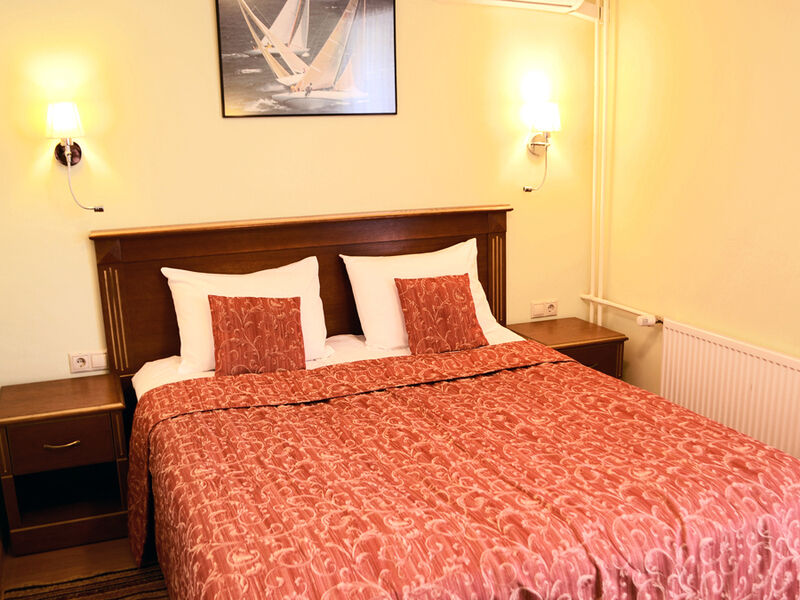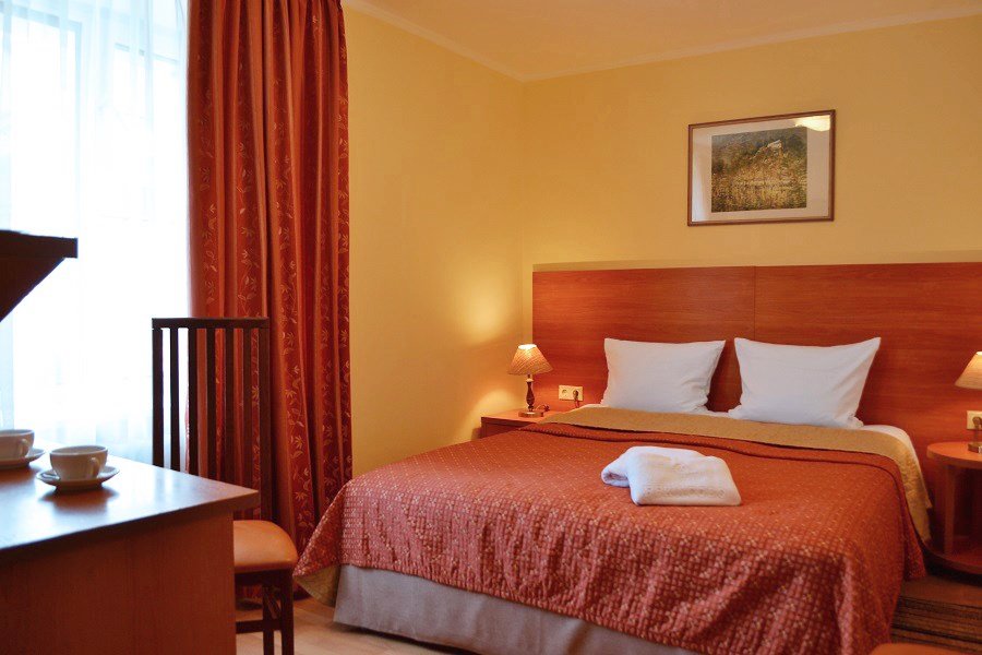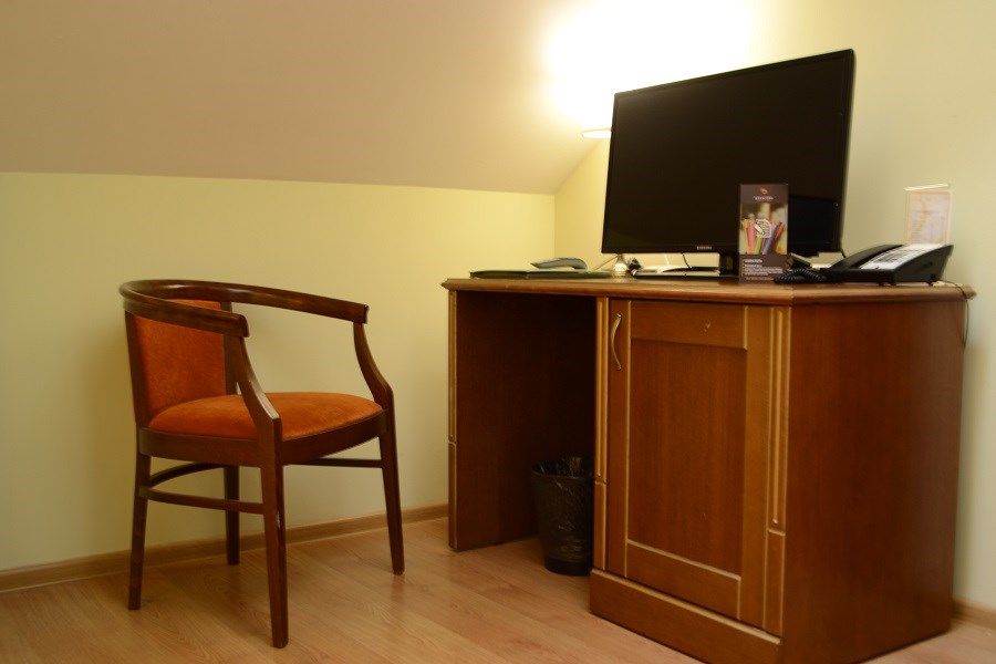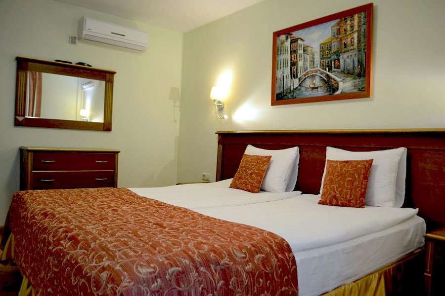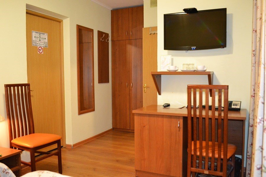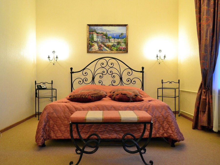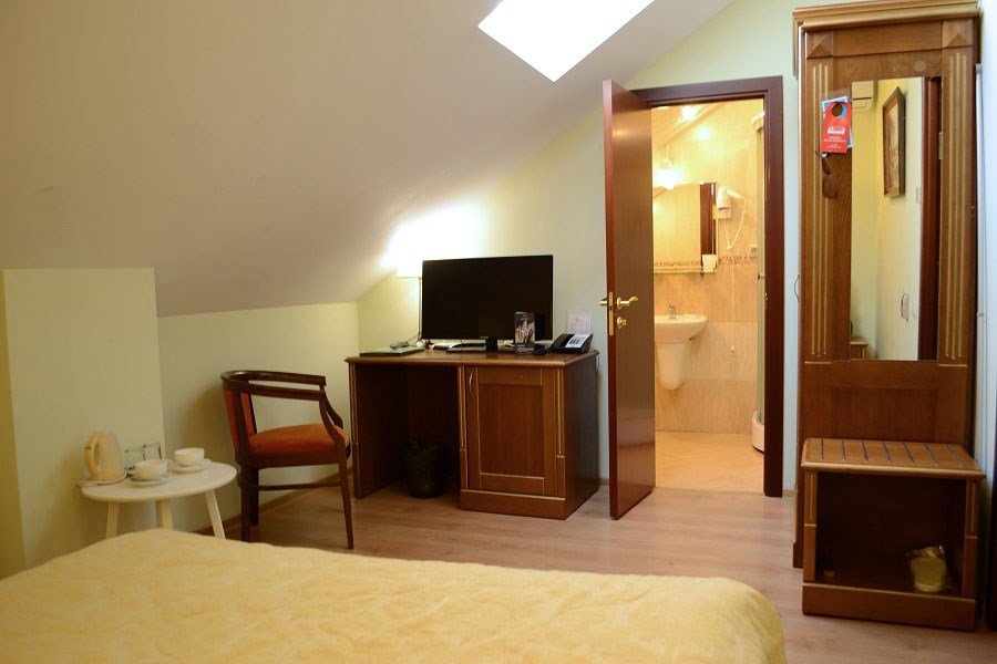 В номере: двуспальная кровать, шкаф, тумба, письменный стол, мини-бар, телевизор, IP-TV, wi-fi.