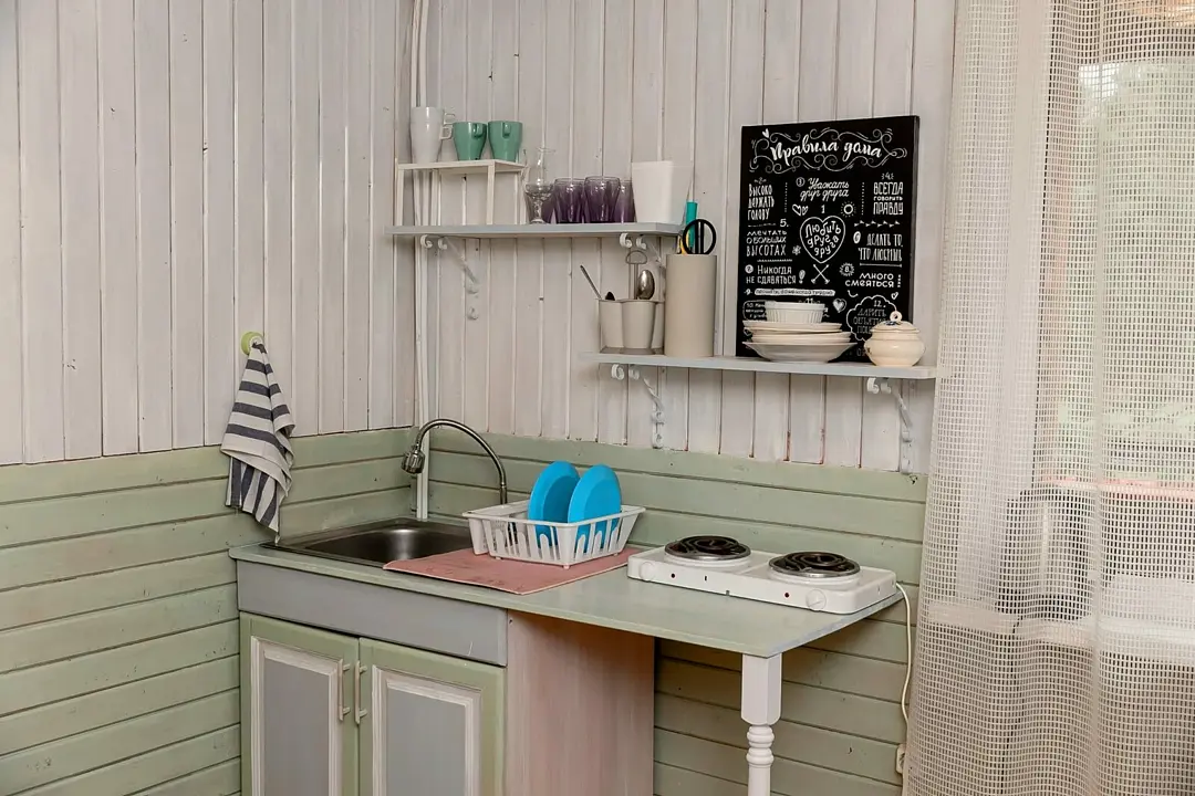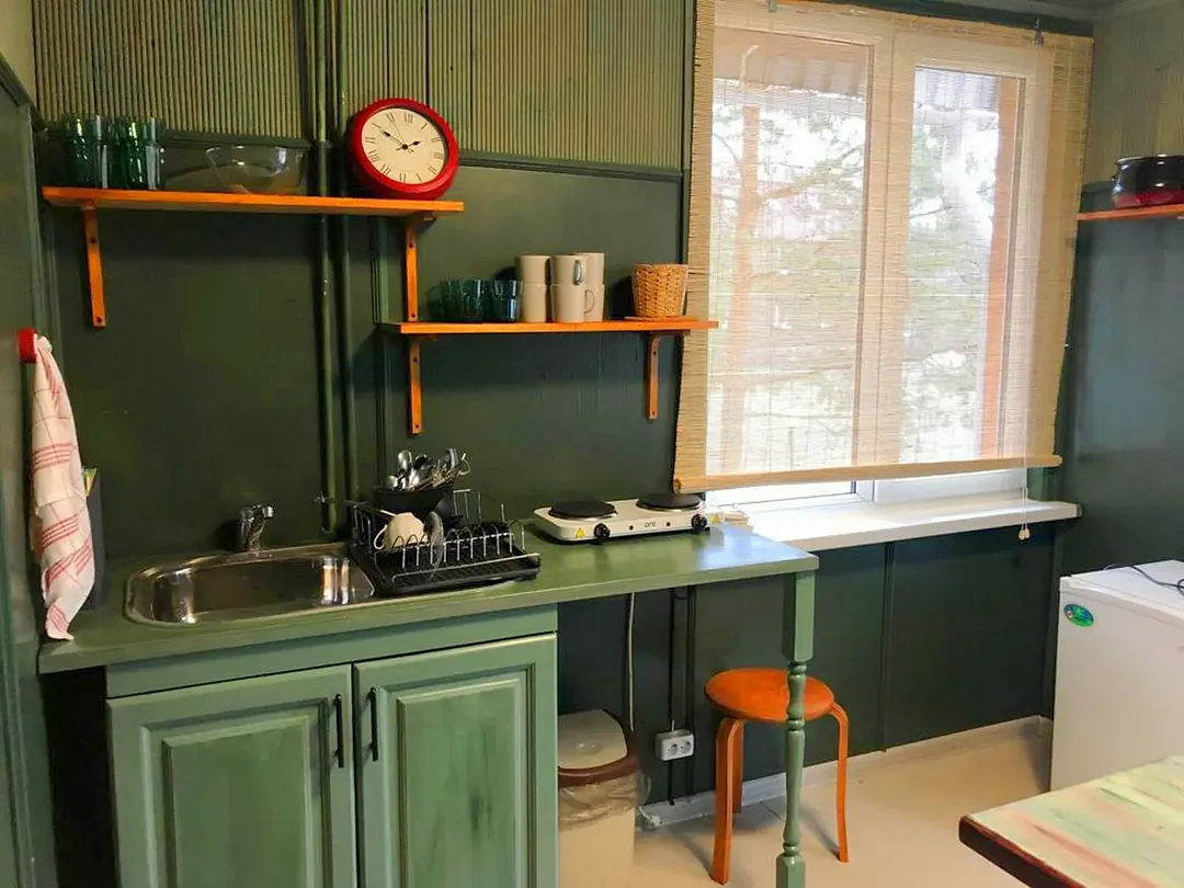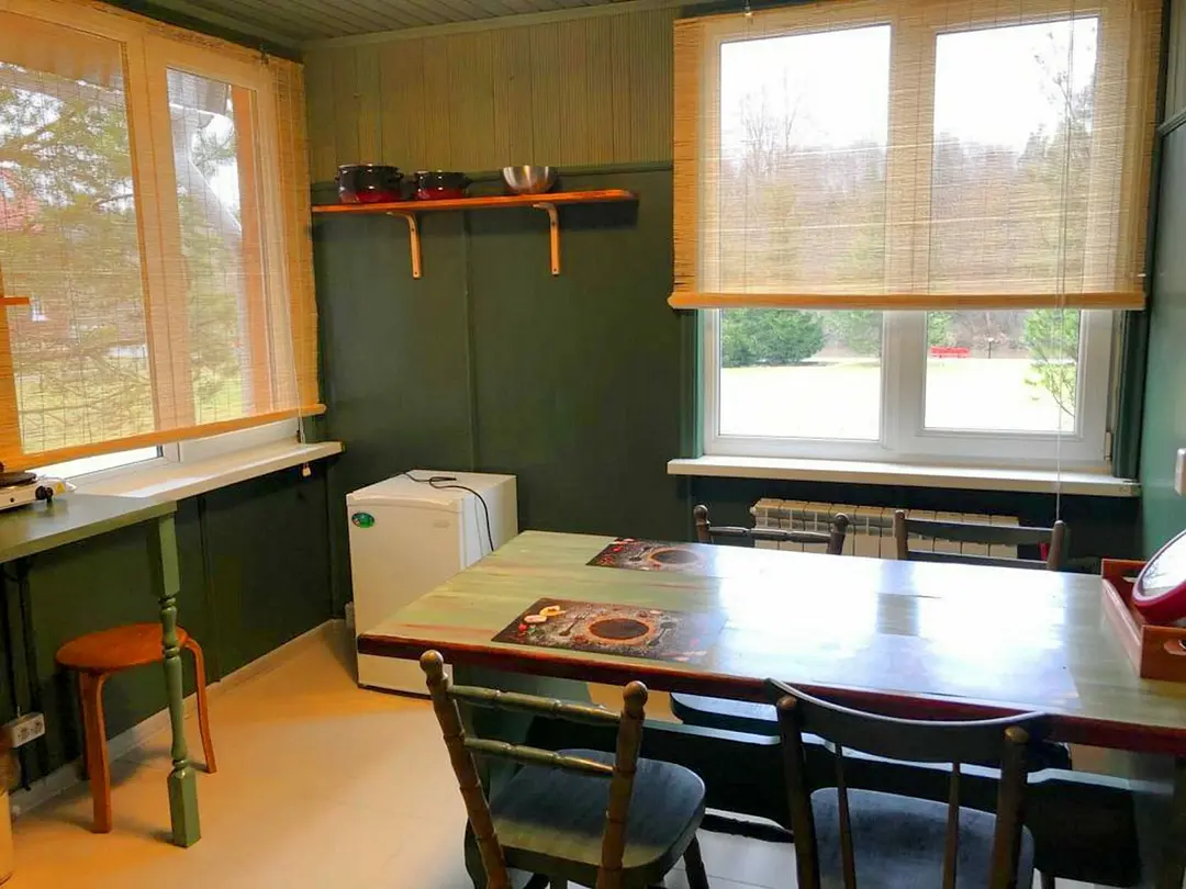 Кухня оборудована необходимой бытовой техникой. Санузел совмещенный (душ и туалет). Коттедж рассчитан на проживание от одного до восьми человек.