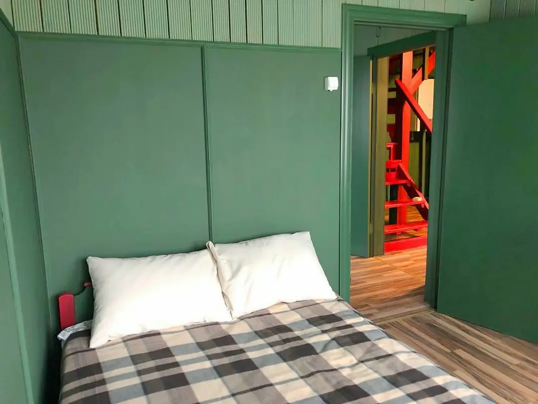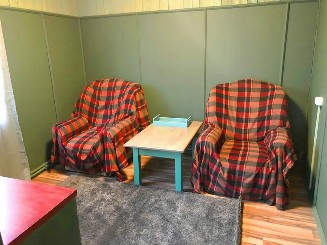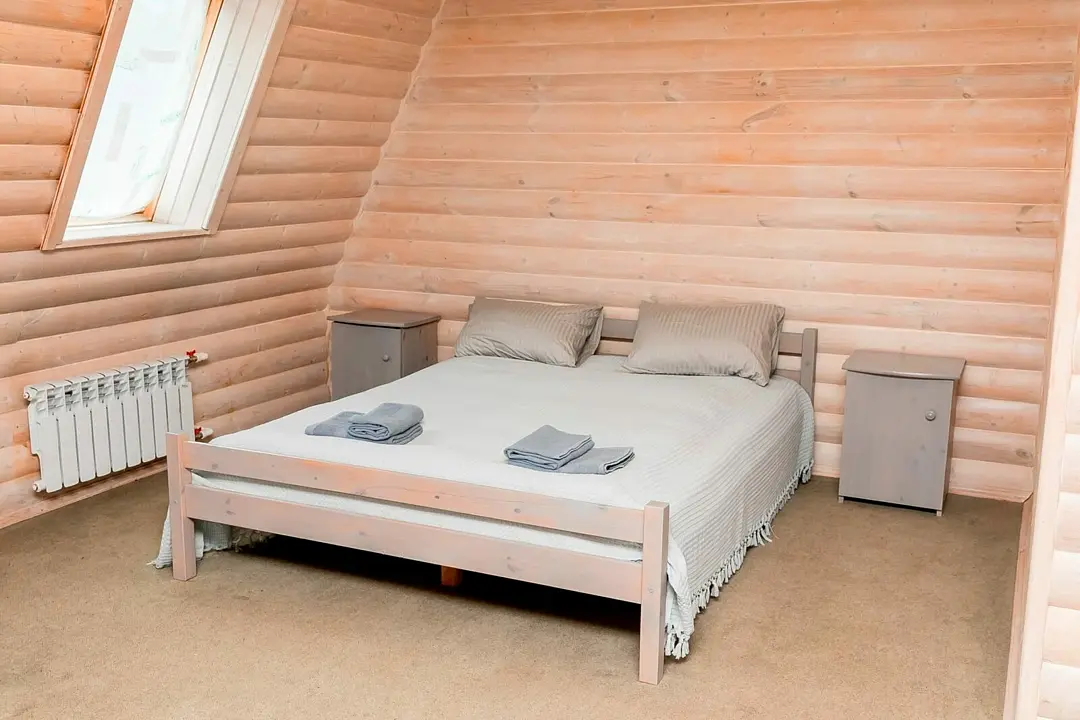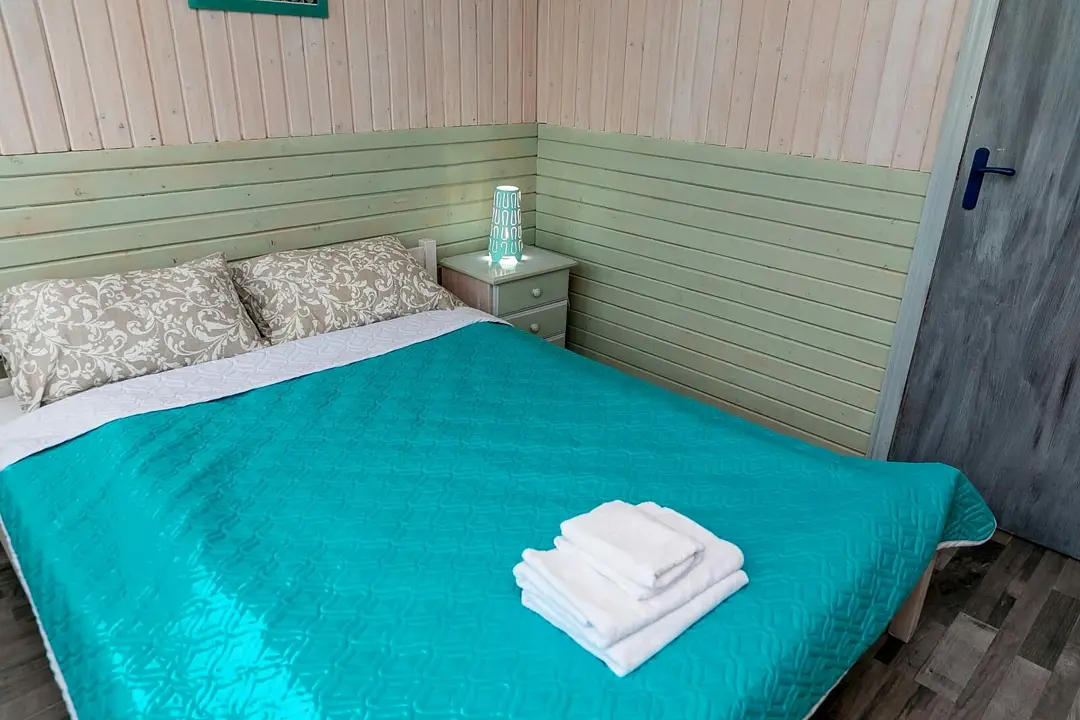 Двухэтажный дом, состоящий из четырех жилых комнат и кухни, площадью восемьдесят квадратных метров. Три изолированные спальные комнаты оснащены двуспальными кроватями, шкафами и комодами. Общая гостиная, имеется раскладывающийся диван и телевизор.