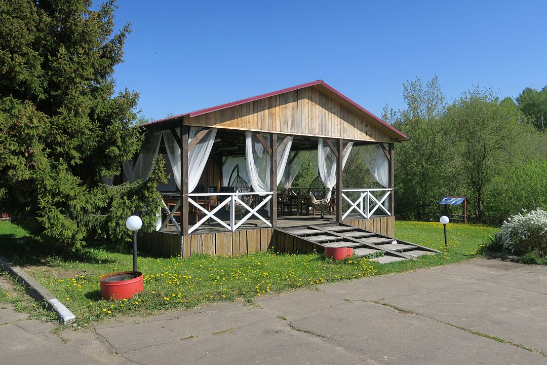 На берегу реки Дубна располагается великолепная летняя веранда, предназначенная для проведения самых разнообразных мероприятий: свадеб, корпоративных праздников и дружеских встреч. Веранда способна вместить до пятидесяти гостей, а продуманное освещение, музыкальный центр и розетки создают идеальные условия для любого торжества.