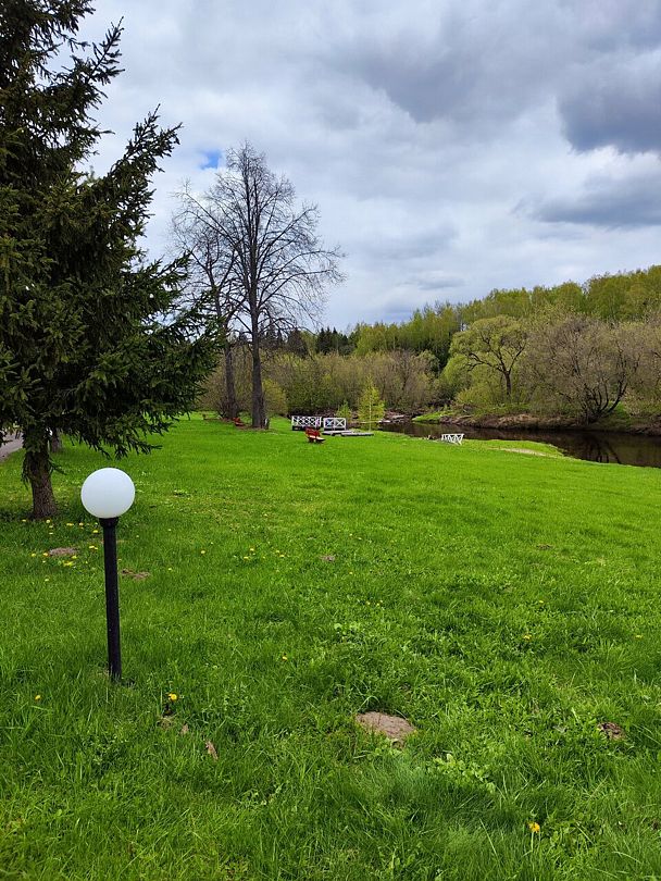 Семейный отдыхДостоинстваХорошая ухоженная территория. Расположение прямо на берегу реки. Есть заходы для купания, но, к сожалению, погода не позволила искупаться. Примерно в полутора км находится село, в котором есть старинная церковь, магазины.