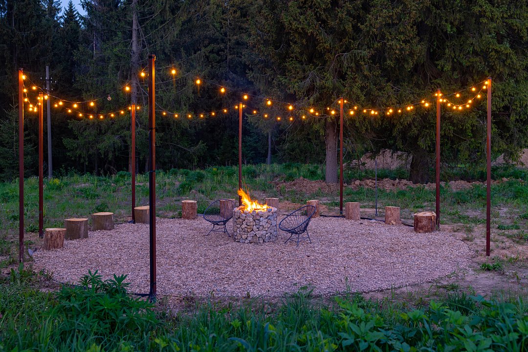 Каждый дом оборудован индивидуальной мангальной зоной, где можно готовить еду на открытом огне. Решетка и шампуры предоставляются для удобства гостей, однако розжиг, угли и дрова необходимо привезти с собой или купить на месте.