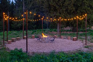 На территории площадью пять гектаров гости найдут много мест для релаксации и развлечений. Здесь можно гулять у пруда с рыбками, отдыхать в беседке, играть в настольный теннис, устраивать пикники в зонах для барбекю, наслаждаться вечером у костра или посетить баню и чан для парения на свежем воздухе. Для детей предусмотрена игровая площадка.