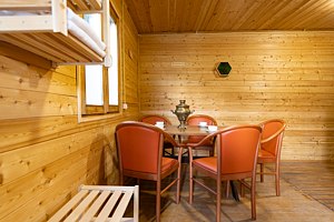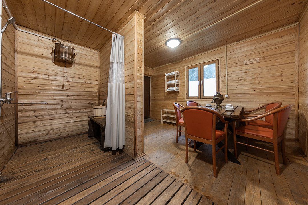 Для проживающих в домах «Семейный №1» и «Семейный №2» в стоимость проживания входит два часа индивидуального пользования баней с понедельника по четверг. В выходные дни требуется отдельное бронирование — 4000 ₽.