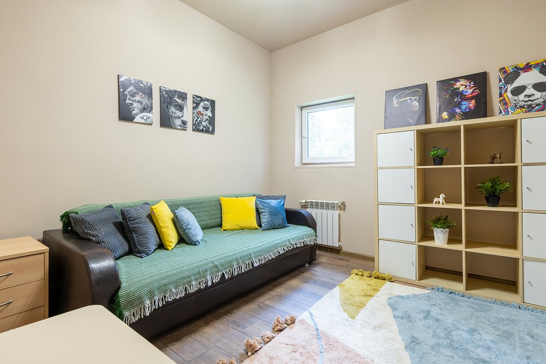 Для детей: детская комната с игровым уголком и раскладным диваном + кроватка для малыша (по запросу).