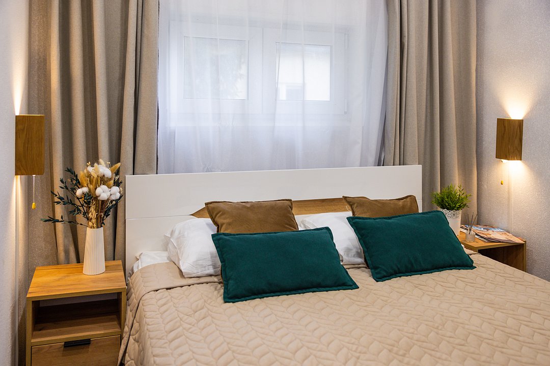 Дом «Солнечный 1» — уютный домик со всеми удобствами. Две комнаты, четыре спальных места. Wi-Fi, микроволновка, плита, чайник, холодильник, ТВ, фен, посуда, полотенца, тапочки, кроватка для малыша (по запросу).
