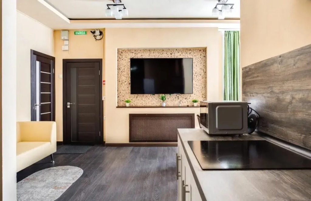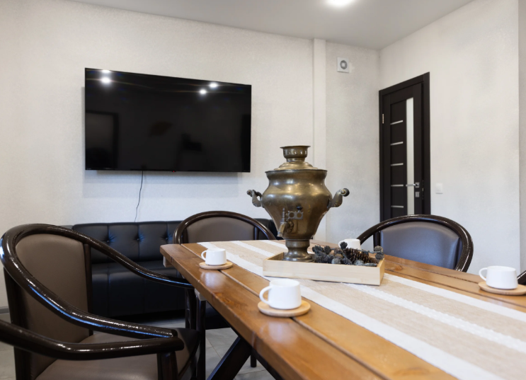 В банном комплексе есть: зона отдыха, телевизор, чайник, микроволновая печь.