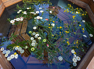 Изготовленный из качественного дерева, чан идеально вписывается в природный ландшафт. Мы предлагаем уникальную возможность дополнить опыт с помощью аромамасел, трав и свежих апельсинов. Можно выбрать любимые ароматы — от расслабляющего лаванды до бодрящего цитруса — чтобы создать атмосферу, соответствующую настроению. Добавление сушеных трав, таких как ромашка или мелисса, не только обогатит аромат, но и подарит дополнительные полезные свойства для кожи.
