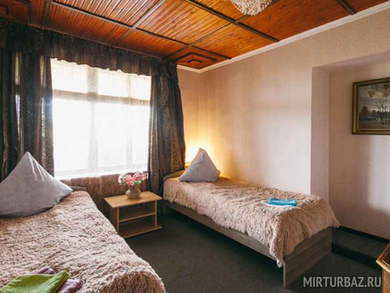 Размещение отдыхающих осуществляется в современные номера категорий «Стандарт», «Комфорт», «Полулюкс» со всеми удобствами и видом на реку или сад. Возможно арендовать коттедж целиком на 22 человека (есть возможность дополнительного размещения в цокольном этаже).