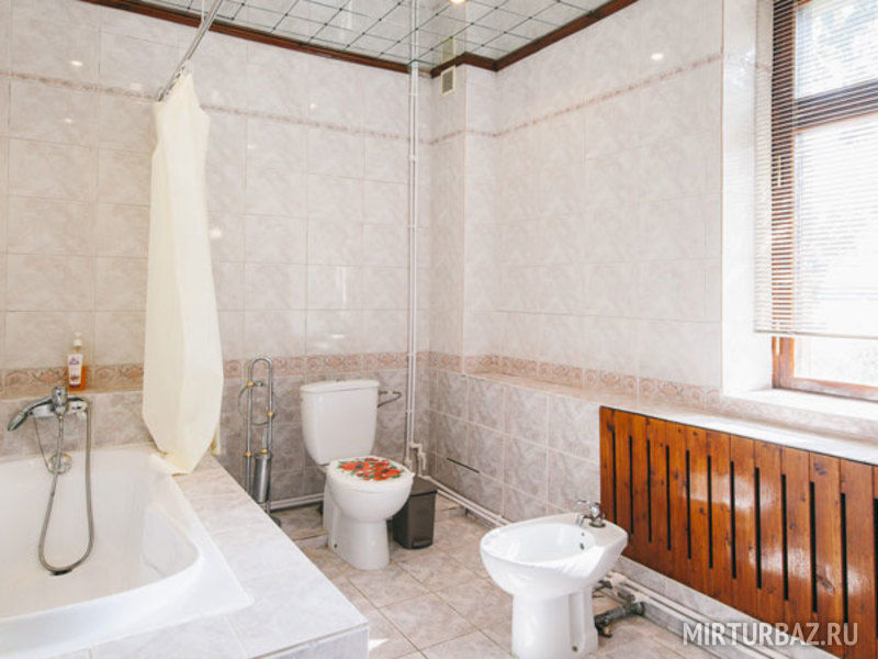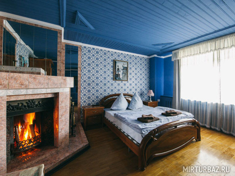В каждой комнате отдельный санузел с душем или ванной. Есть просторные комнаты с настоящим камином, русская баня и бассейн-купель.