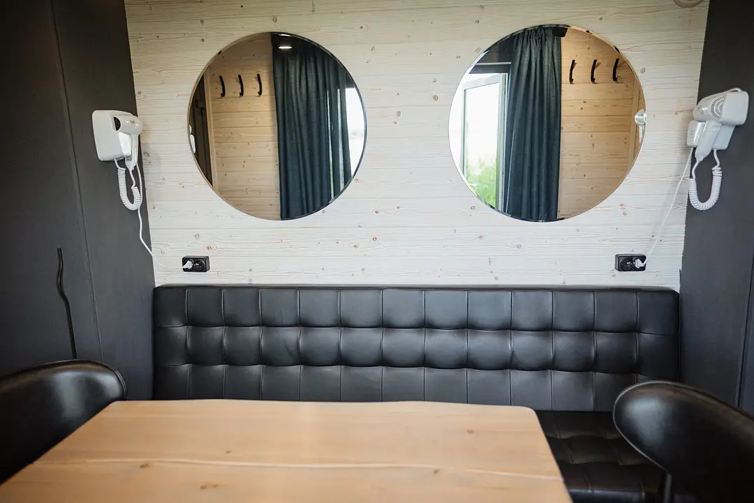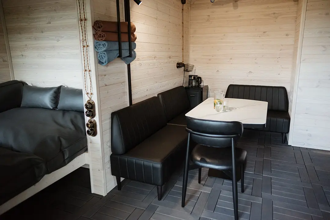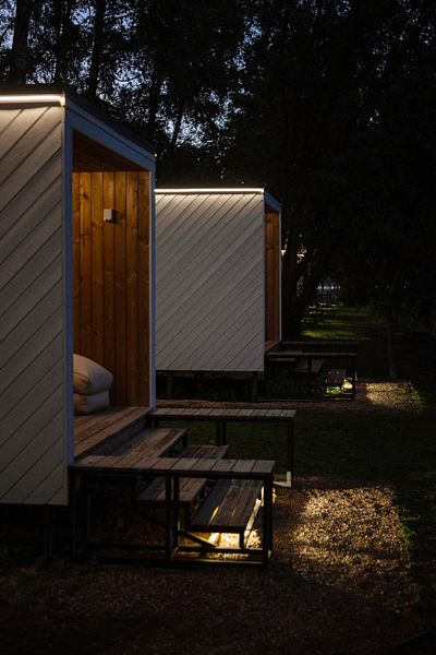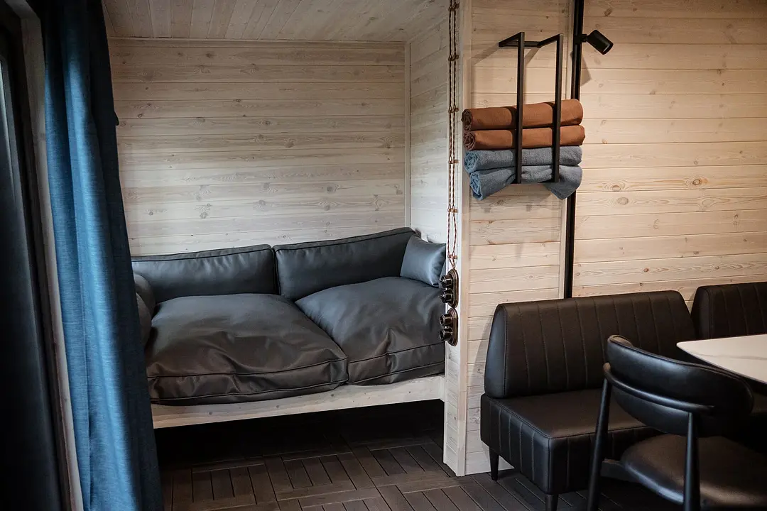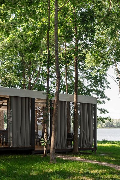 На территории глэмпинга работает ресторан, есть бани, чаны на дровах, прокат сапов, каяков и лодок. Если гости путешествуют на машине, припарковаться можно будет на парковке рядом.