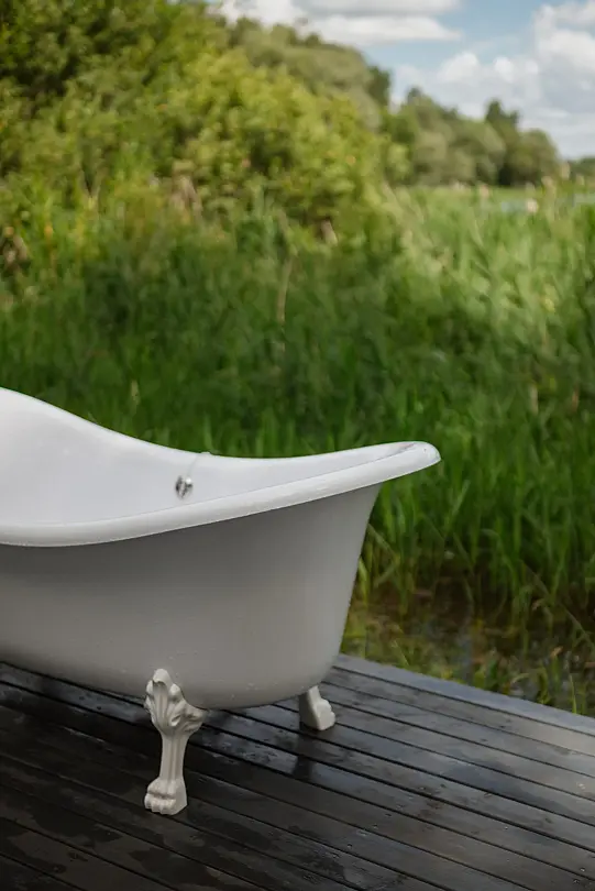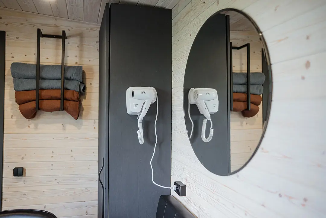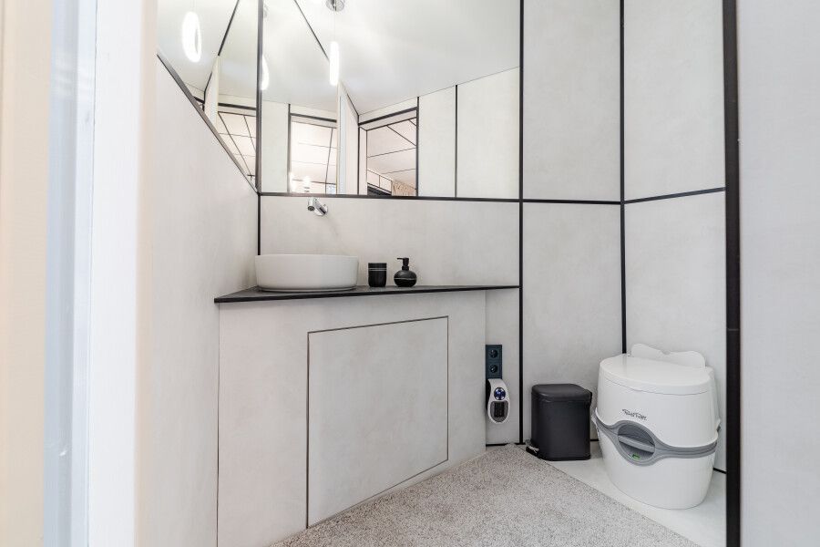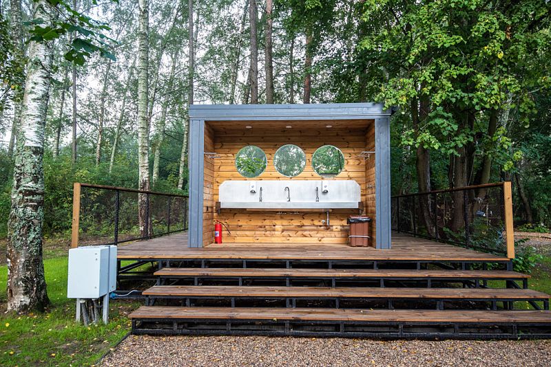 Удобства находятся в отдельном эко-модуле рядом с домиком, что удобно гостям и безопасно для природы.