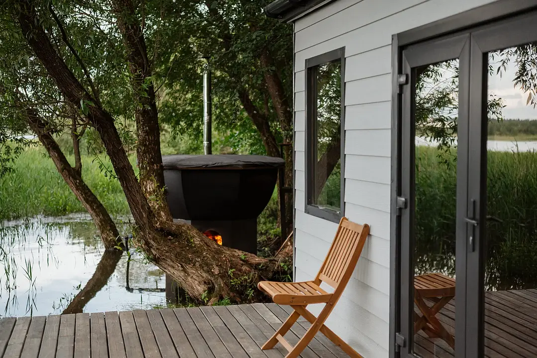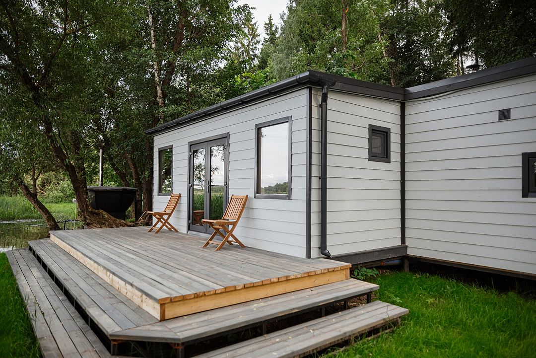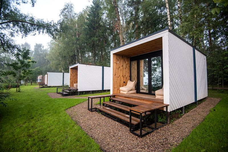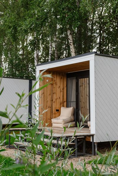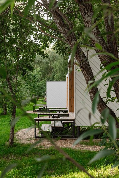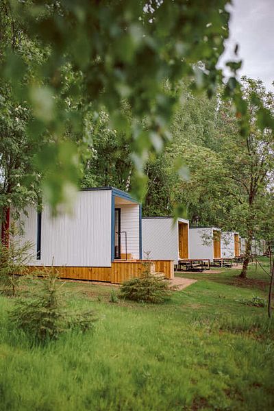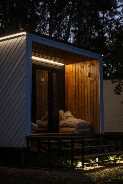 Комфортные дома с панорамными окнами и собственной верандой в 7 метрах от Истринского водохранилища. Санузел находится в домике, а душ в отдельном экологичном модуле, который обеспечивает комфорт гостей с заботой о природе.