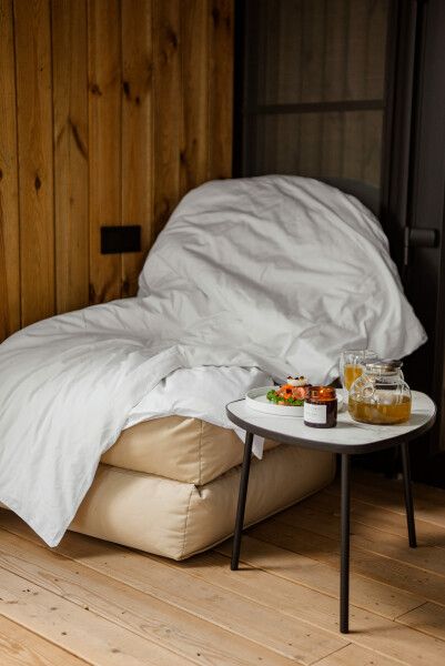 Инфраструктура: зона отдыха, полотенца, душНебольшая уютная баня для двух-четырех гостей с красивейшей ванной снаружи. Внутри бани комната отдыха со столом и диванчиком, парилка и санузел. Есть полотенца, в душе есть косметические принадлежности и фен и банные аксессуары.